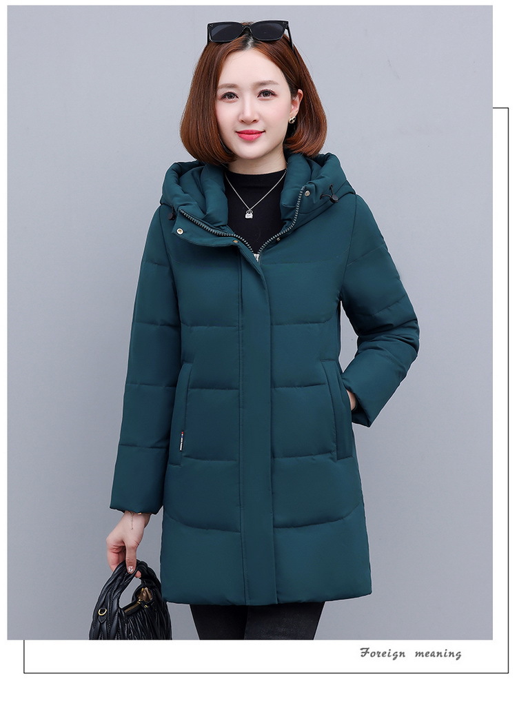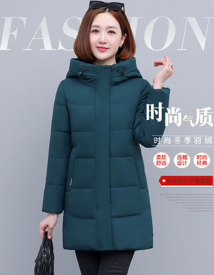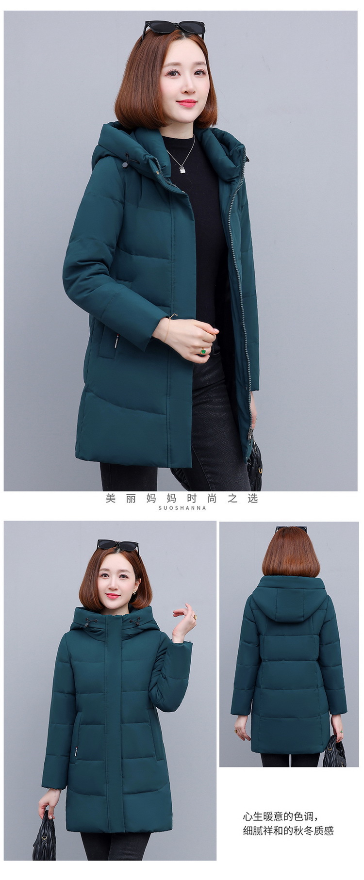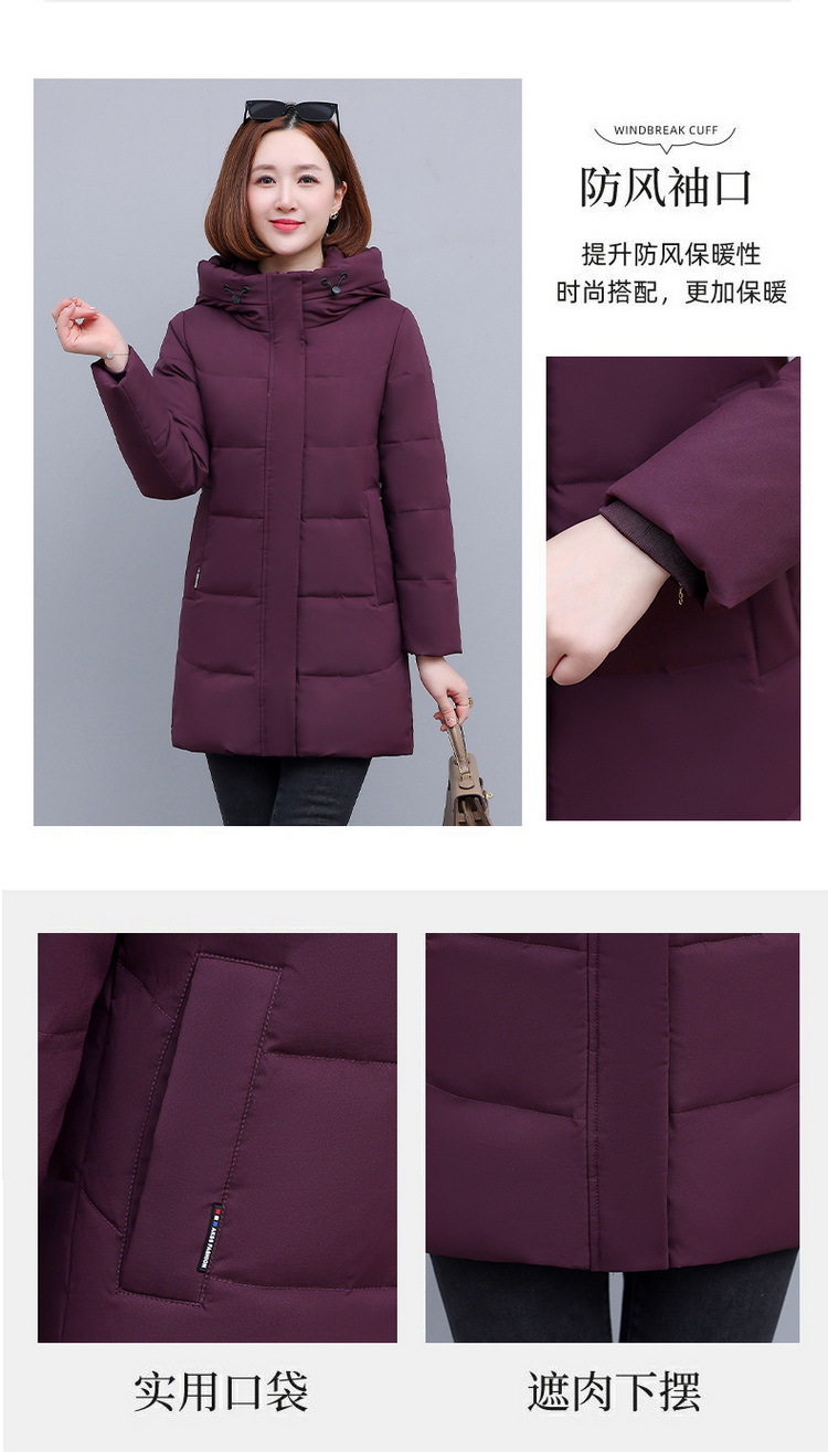 중년 어머니를위한 카운터 2024 겨울 오리 다운 재킷 캐주얼 슬리밍 올 매치 후드 중간 길이의 여성 의류