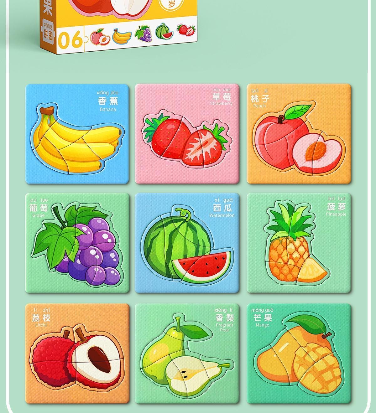 어린이 직소 퍼즐 132 ~ 6 세 아기 깨달음 뇌 과일 동물 패턴 퍼즐 조기 교육 조립 장난감스토어 가기