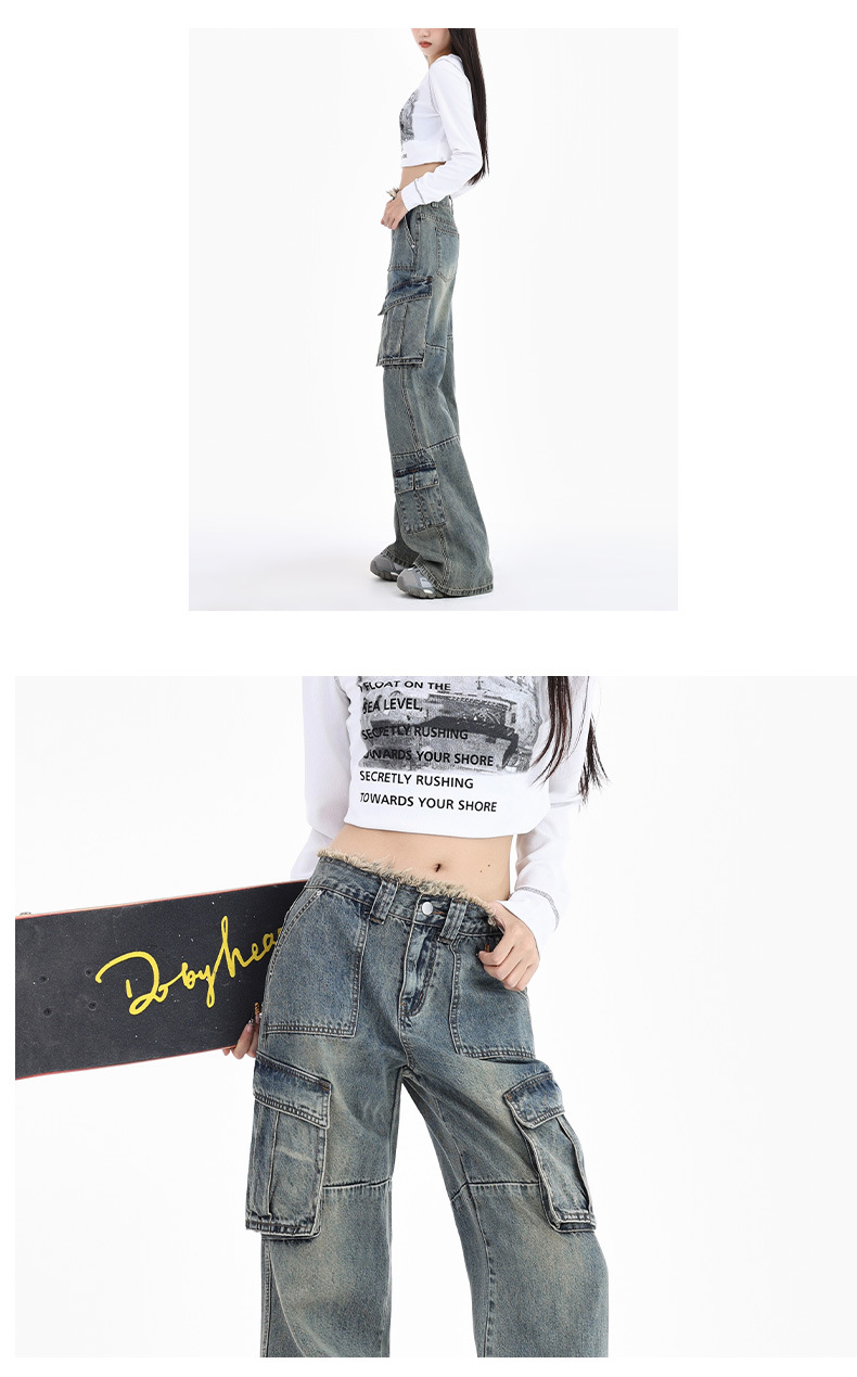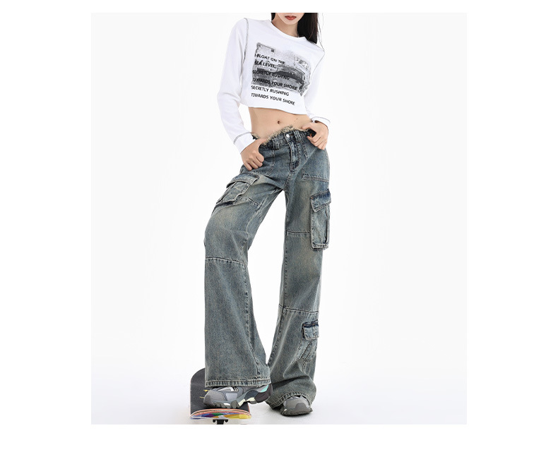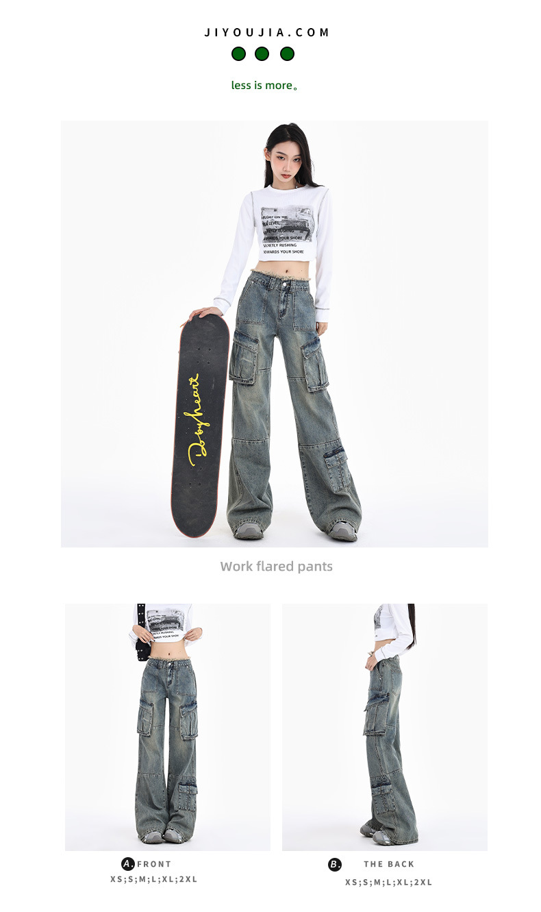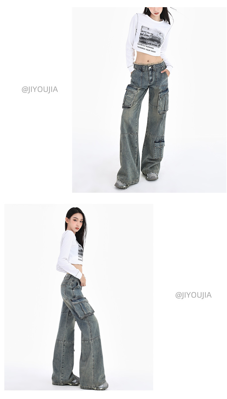 2024 새로운 미국 레트로 폴드 데님 여성의 높은 허리 슬리밍 넓은 다리 바지 레트로 블루 바지스토어 가기