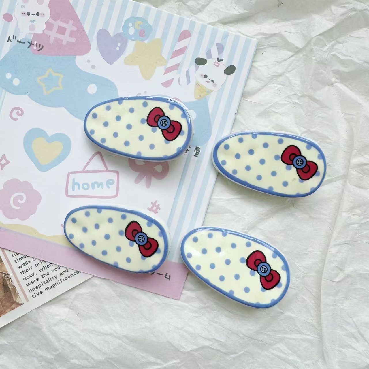 • 블루 폴카 도트 나비넥타이 물방울 머리핀