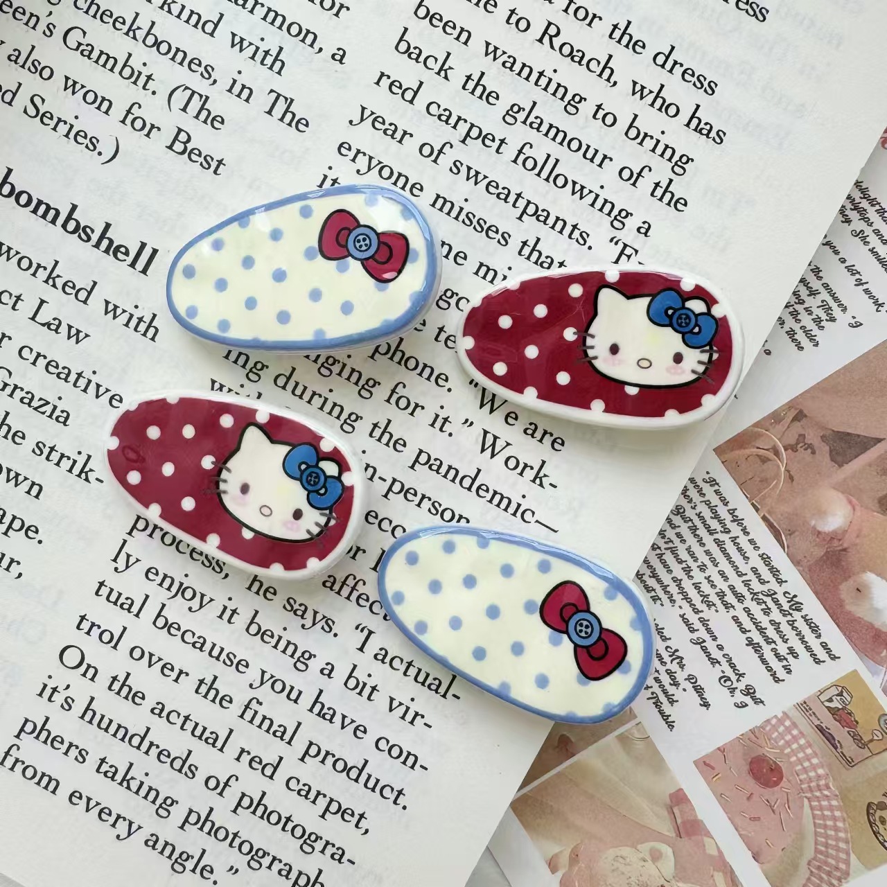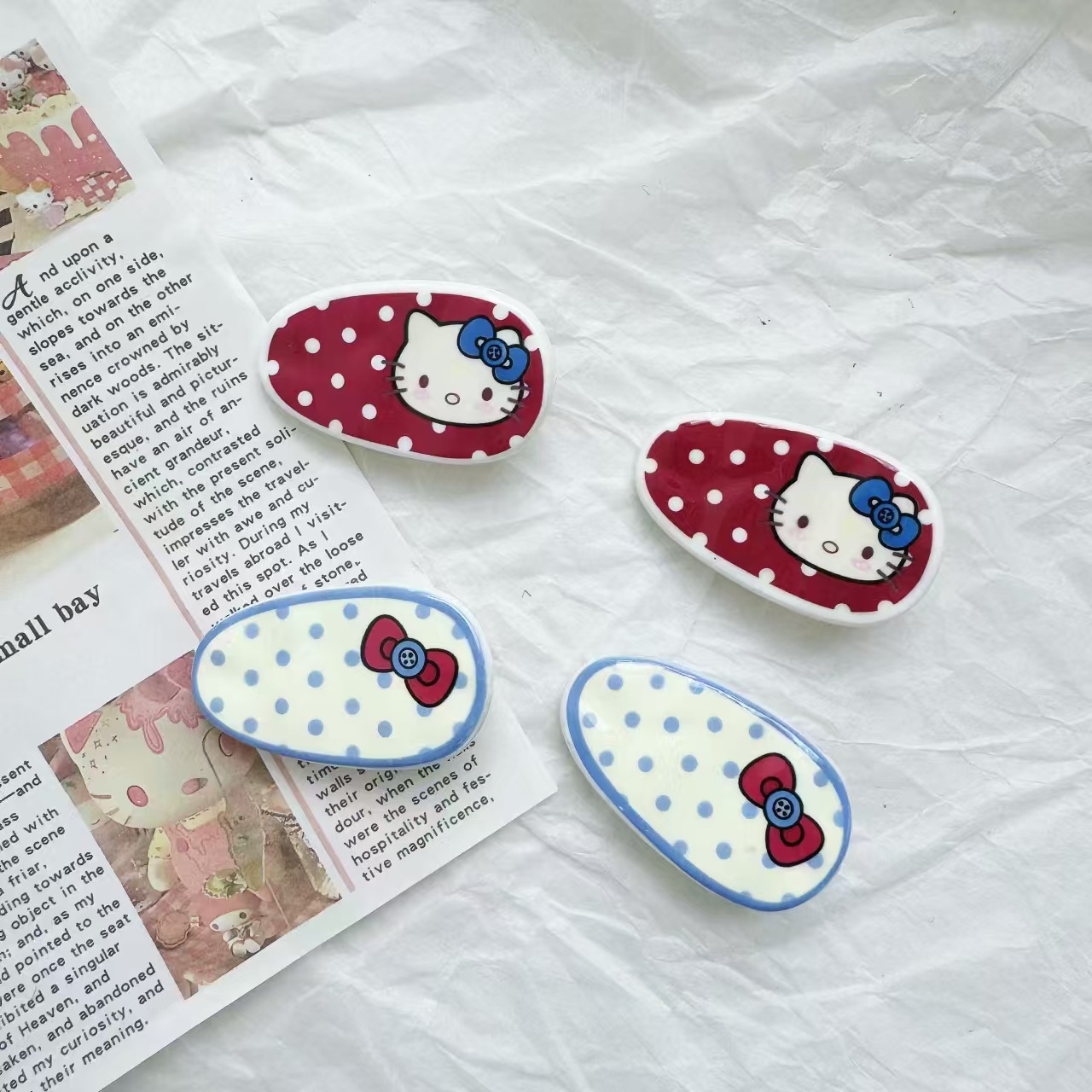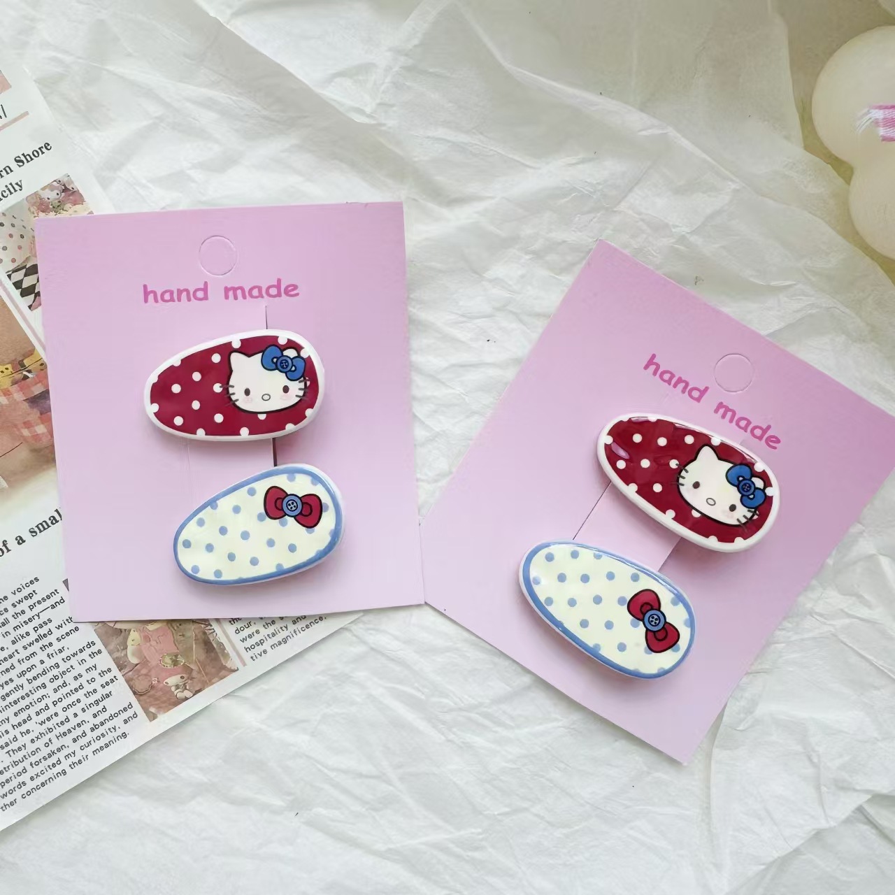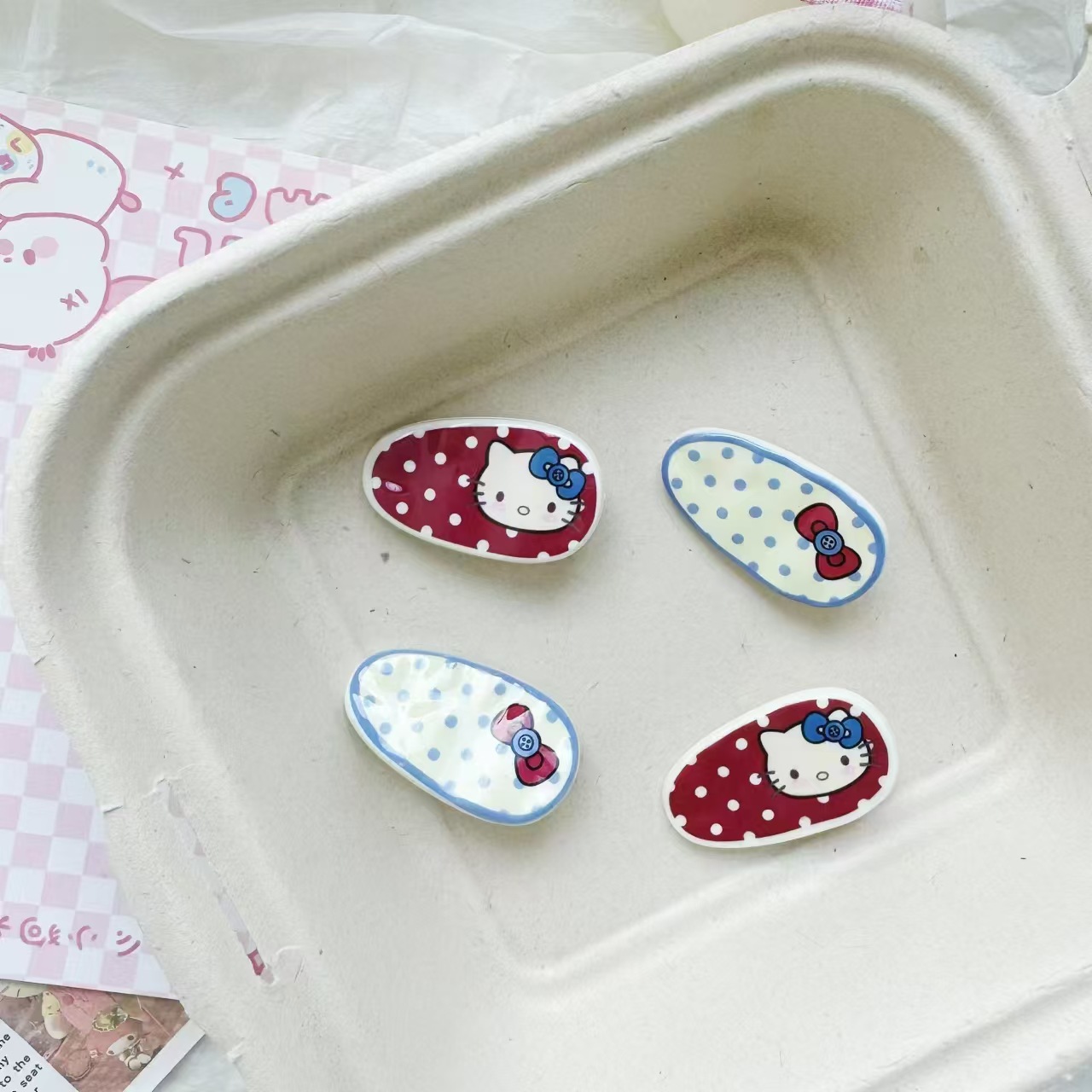 만화 귀여운 폴카 포인트 고양이 헤어핀 달콤한 소녀의 뱅 사이드 클립 인 올 매치 학생 헤어핀 헤어 액세서리
