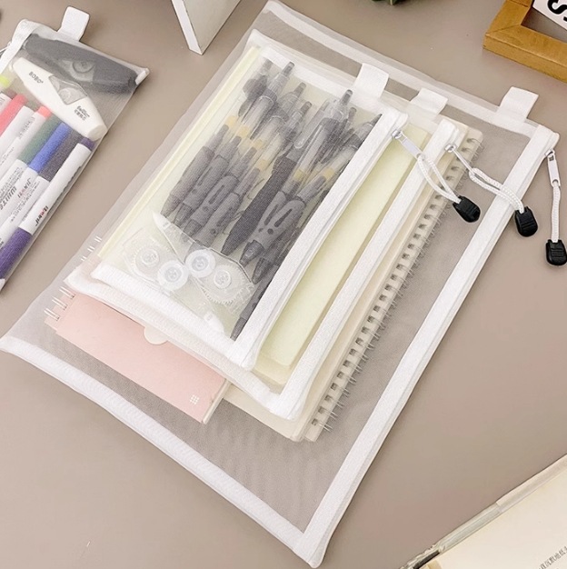 파일 가방 투명 메쉬 필통 학생 필통 핸드백 시험용 지퍼 수납 가방 사무용 문서 파일