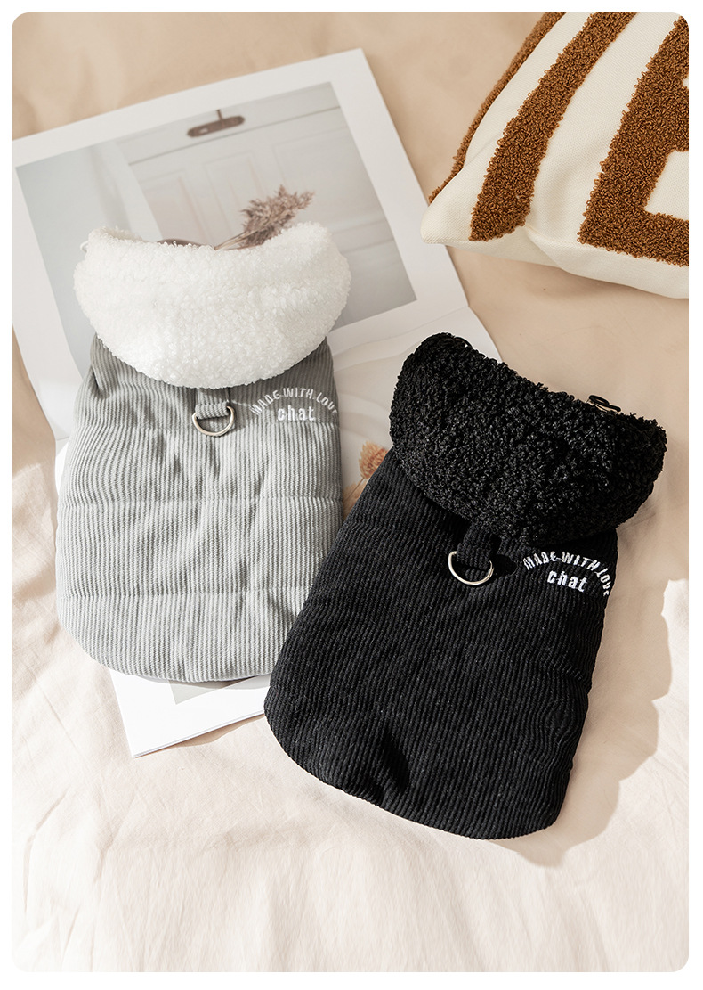 강아지 옷 가을과 겨울 작은 개 테디 베어 강아지 새끼 고양이 따뜻한 코듀로이 두 다리 애완 동물 코튼 코트스토어 가기
