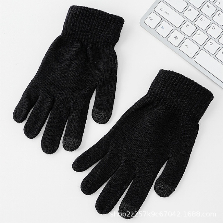 터치 스크린 장갑 여성의 겨울 따뜻한 방한 남성 더블 레이어 기모 두꺼운 작업 니트 울 한국어 스타일 사이클링 학생스토어 가기