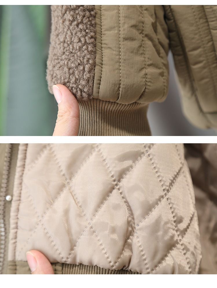 • 양털 패치워크 코튼 코트 카키