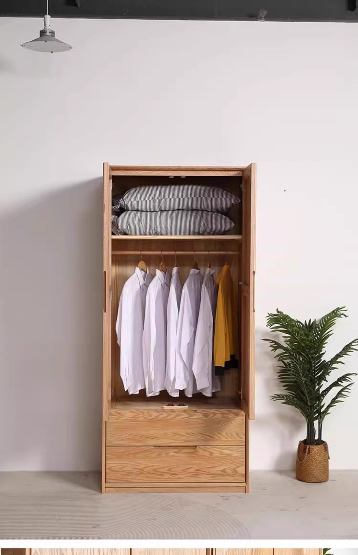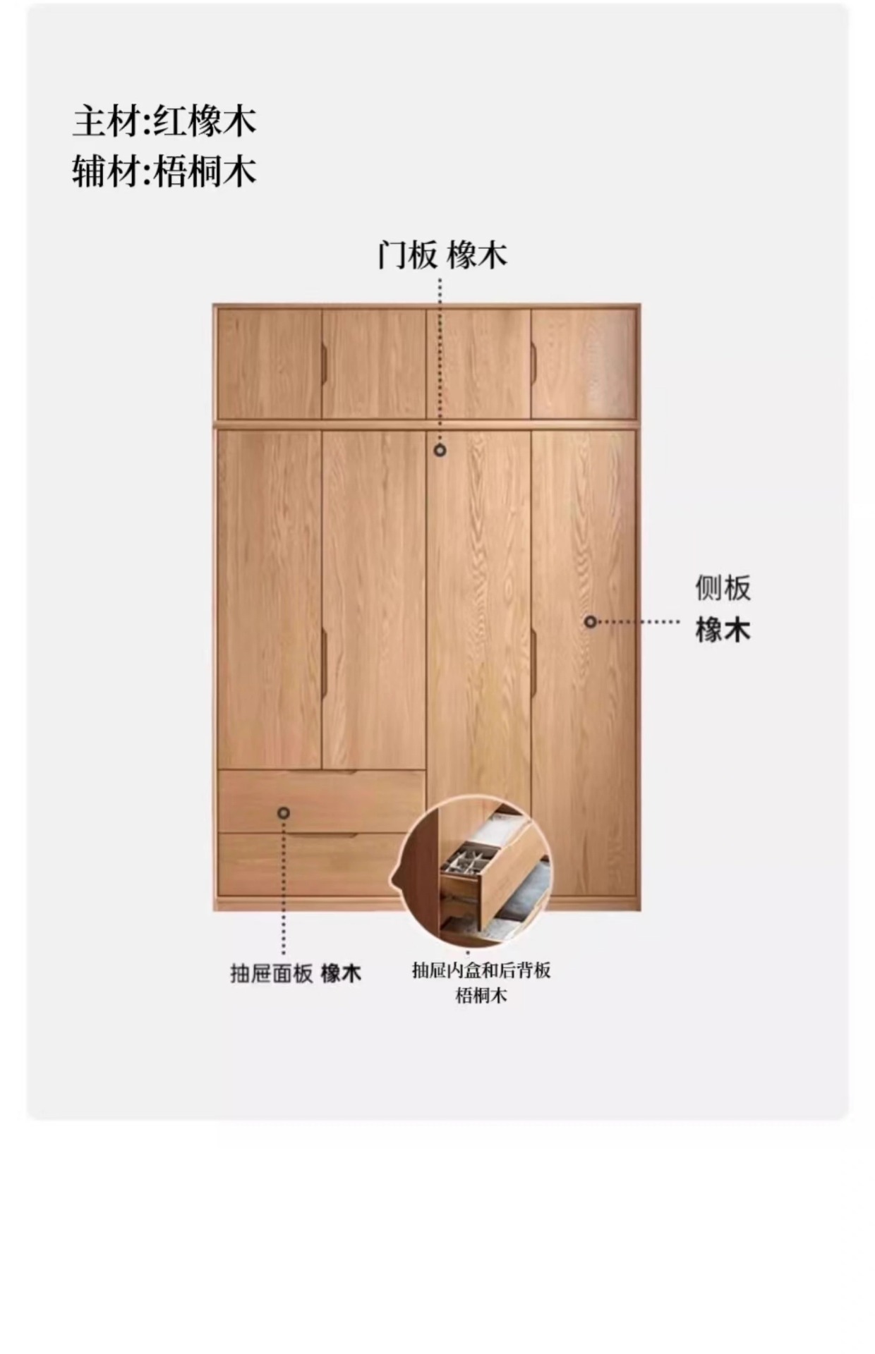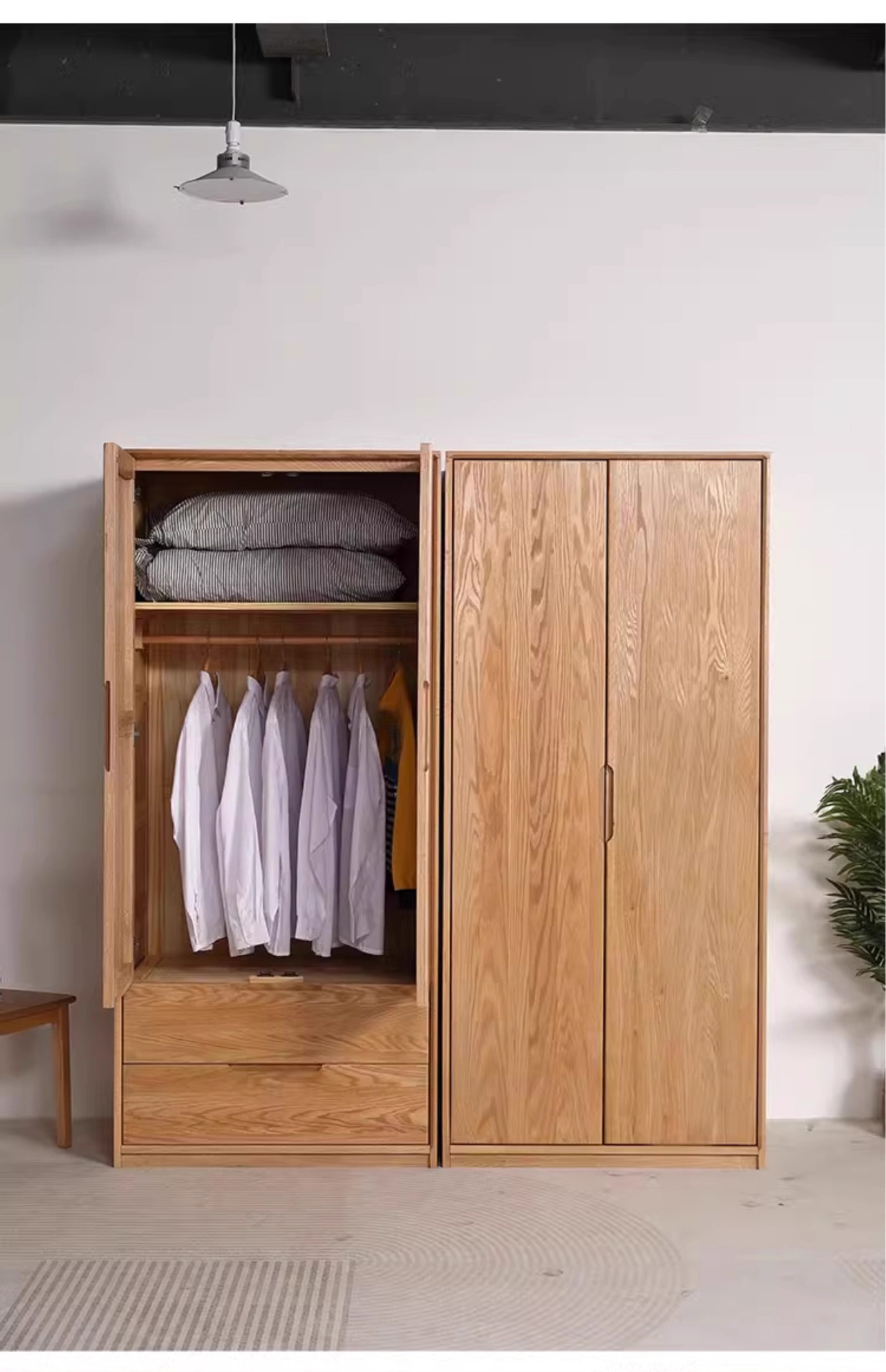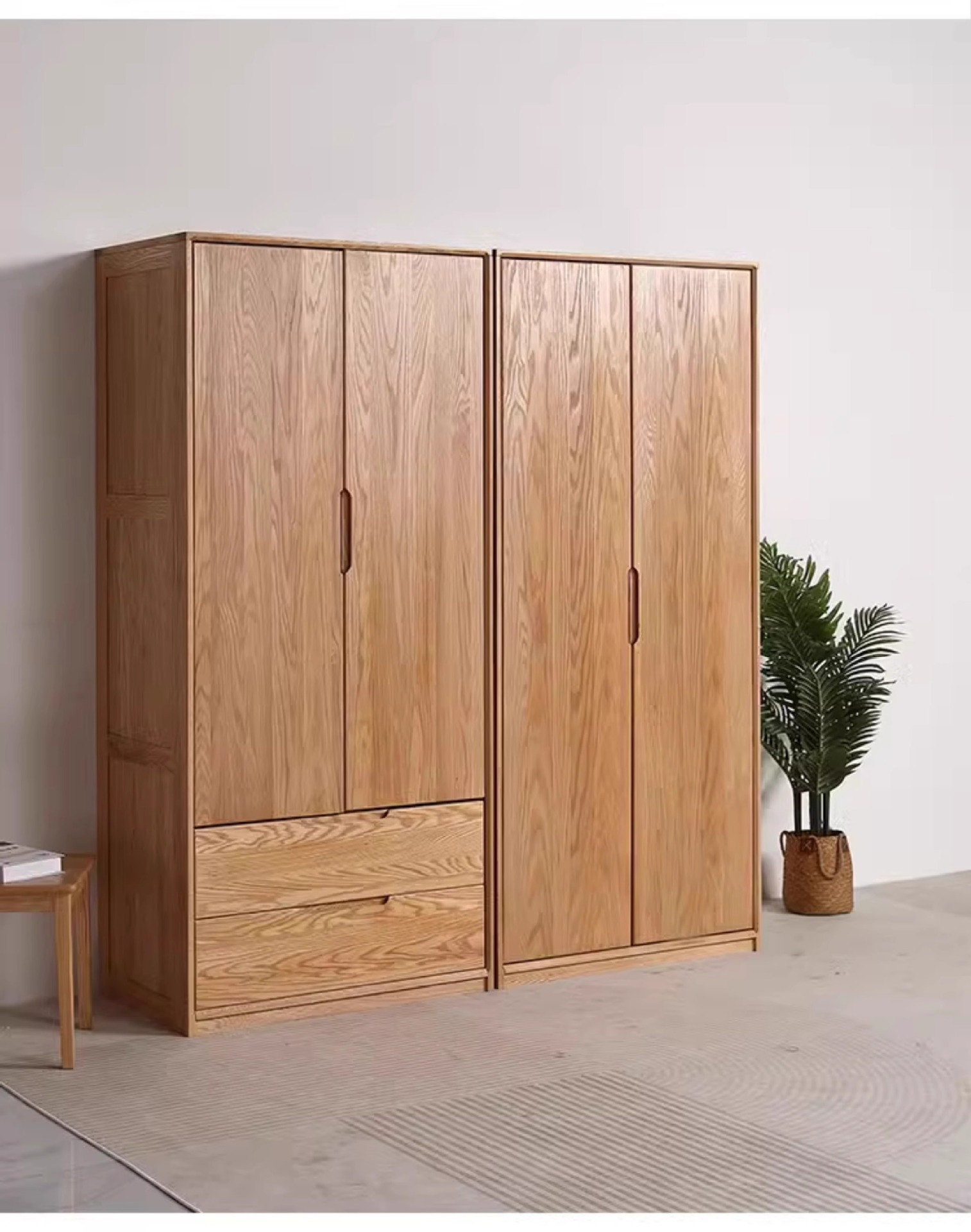 빨간 오크 옷장 가득 차있는 단단한 나무 옷장 북유럽 침실 이동 문 가정용 저장 캐비닛 옷장 보관 캐비닛