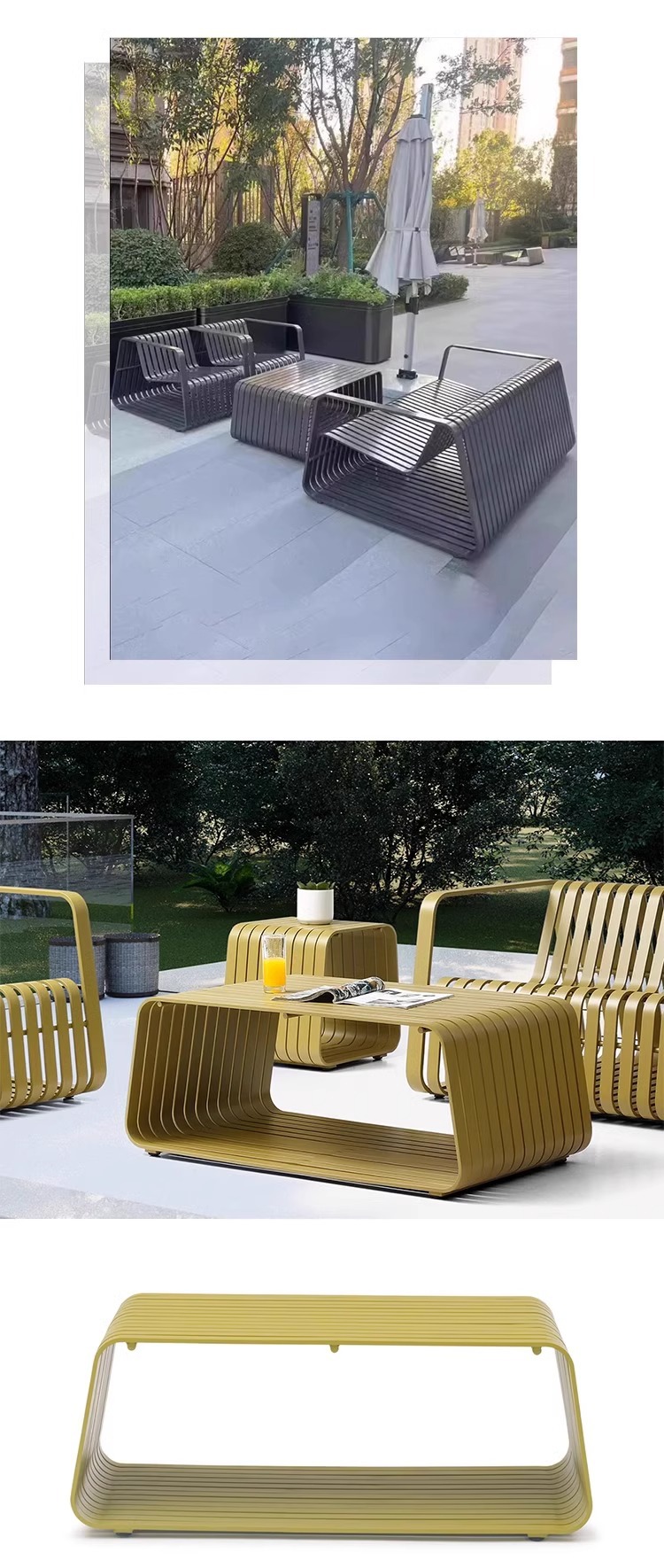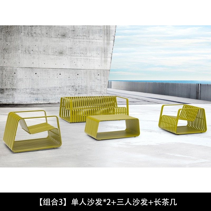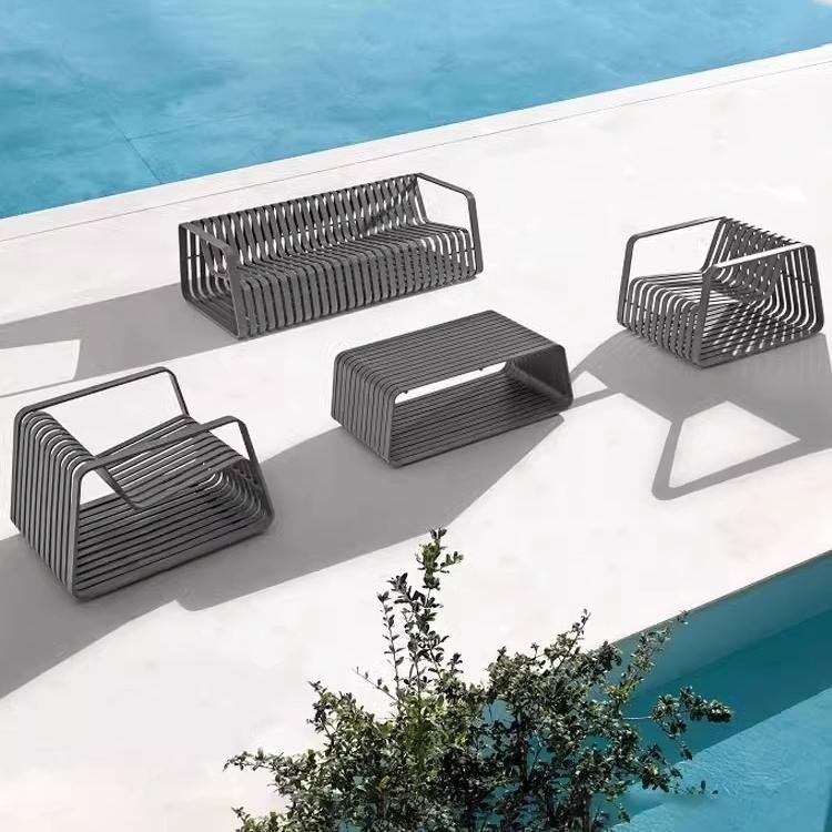 户外不锈钢沙发茶几组合酒店庭院花园民宿铝合金防雨防晒休闲家具