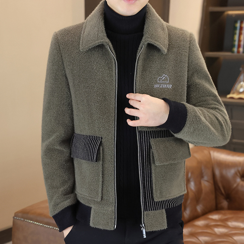 겨울 골드 밍크 양털 코트 남자 짧은 라셀 기모 최고 남자 모직 캐주얼 재킷 2024 새로운