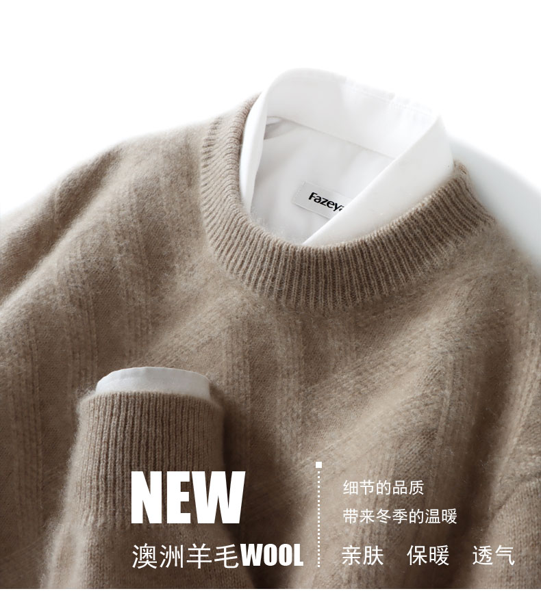 두꺼운 캐시미어 스웨터 남자의 가을과 겨울 새로운 라운드 넥 솔리드 컬러 스웨터 느슨한 비즈니스 캐주얼 울 니트 베이스 셔츠