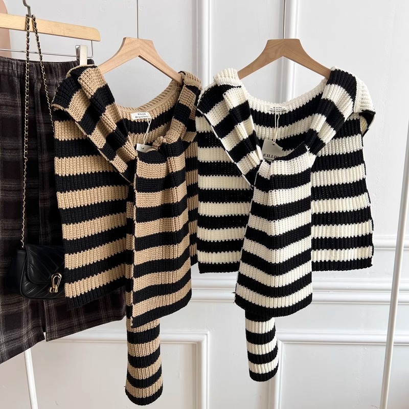 디자인 센스 스트라이프 니트 후드 목도리 여성의 가을과 겨울 따뜻한 스카프 모자 원피스 와셔 목 보호 목스토어 가기