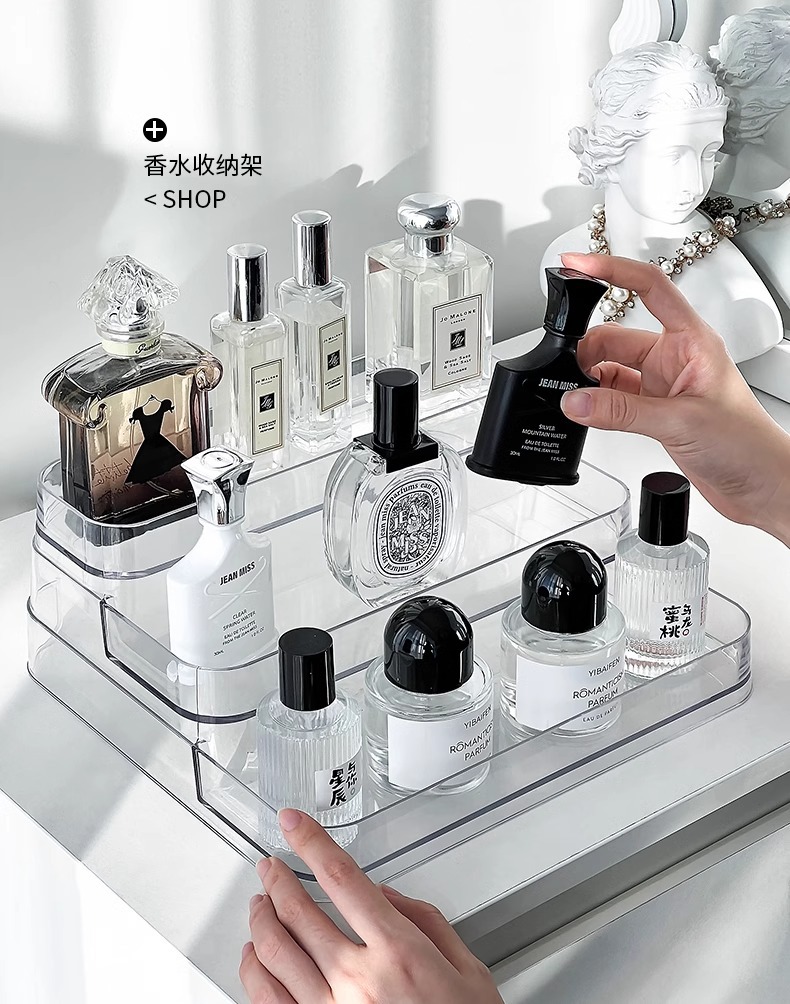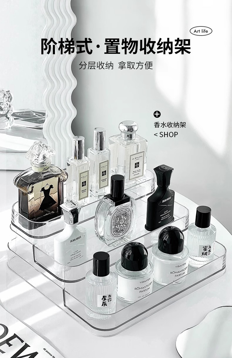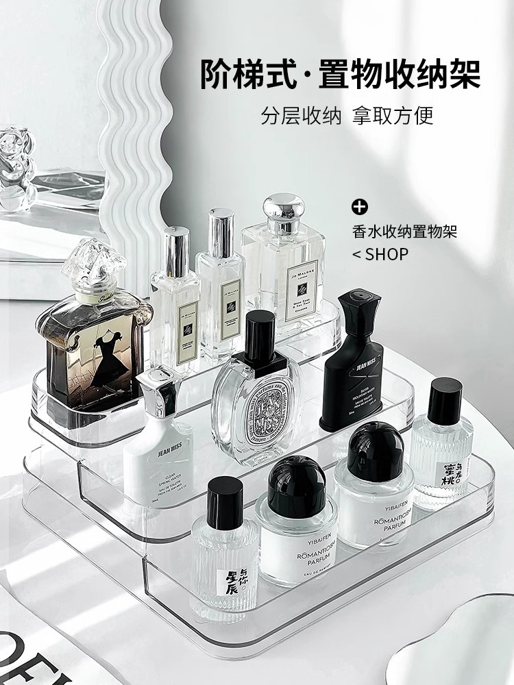 데스크탑 향수 저장 랙 드레싱 테이블 화장품 저장 상자 아크릴 라이트 럭셔리 Ins 투명 사다리 디스플레이 스탠드스토어 가기