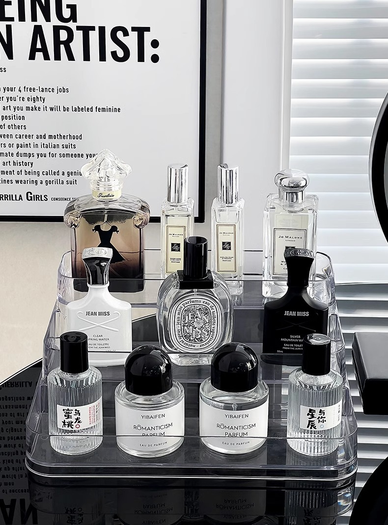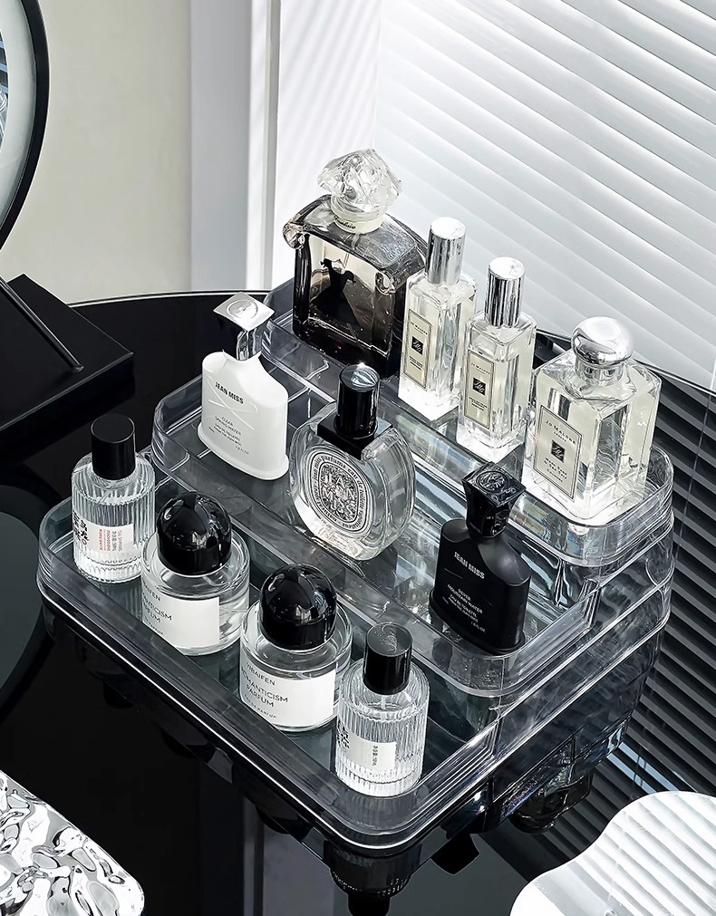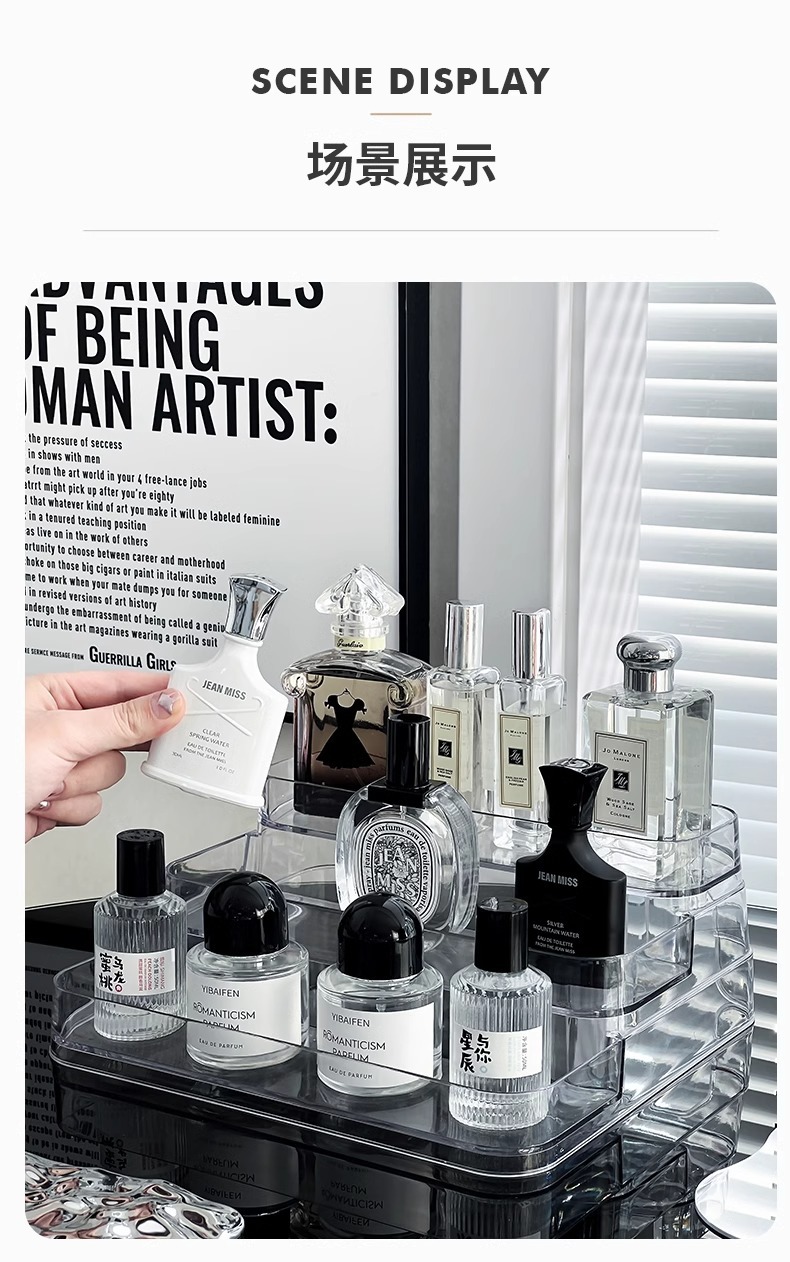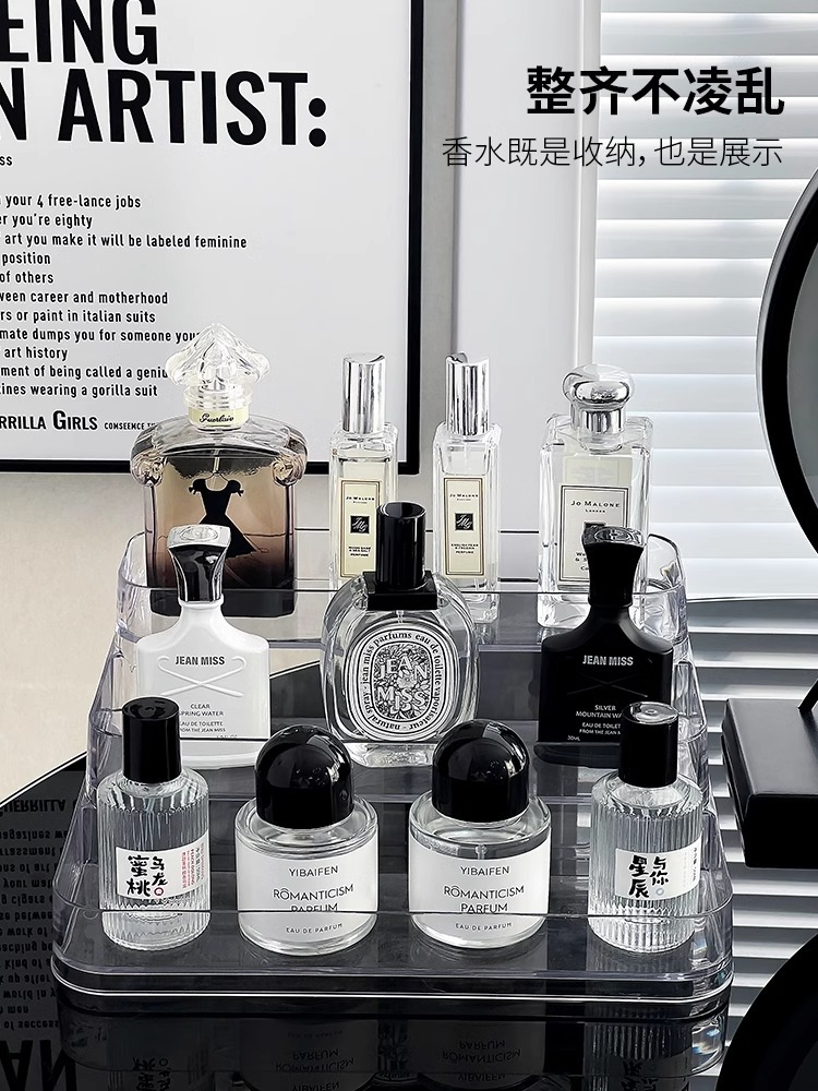 데스크탑 향수 저장 랙 드레싱 테이블 화장품 저장 상자 아크릴 라이트 럭셔리 Ins 투명 사다리 디스플레이 스탠드