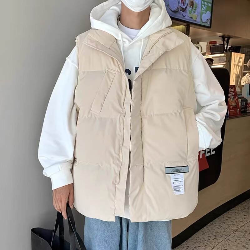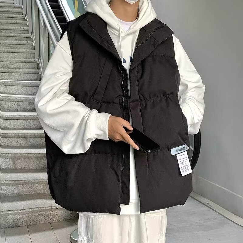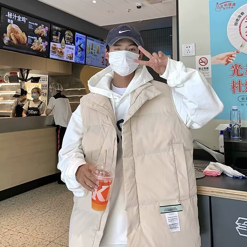 겨울 홍콩 스타일 코튼 패딩 재킷 조끼 남성용 두꺼운 코튼 패딩 조끼 디자인 센스 겨울 패션 브랜드 올매치 민소매 웨이스트 코트 재킷스토어 가기