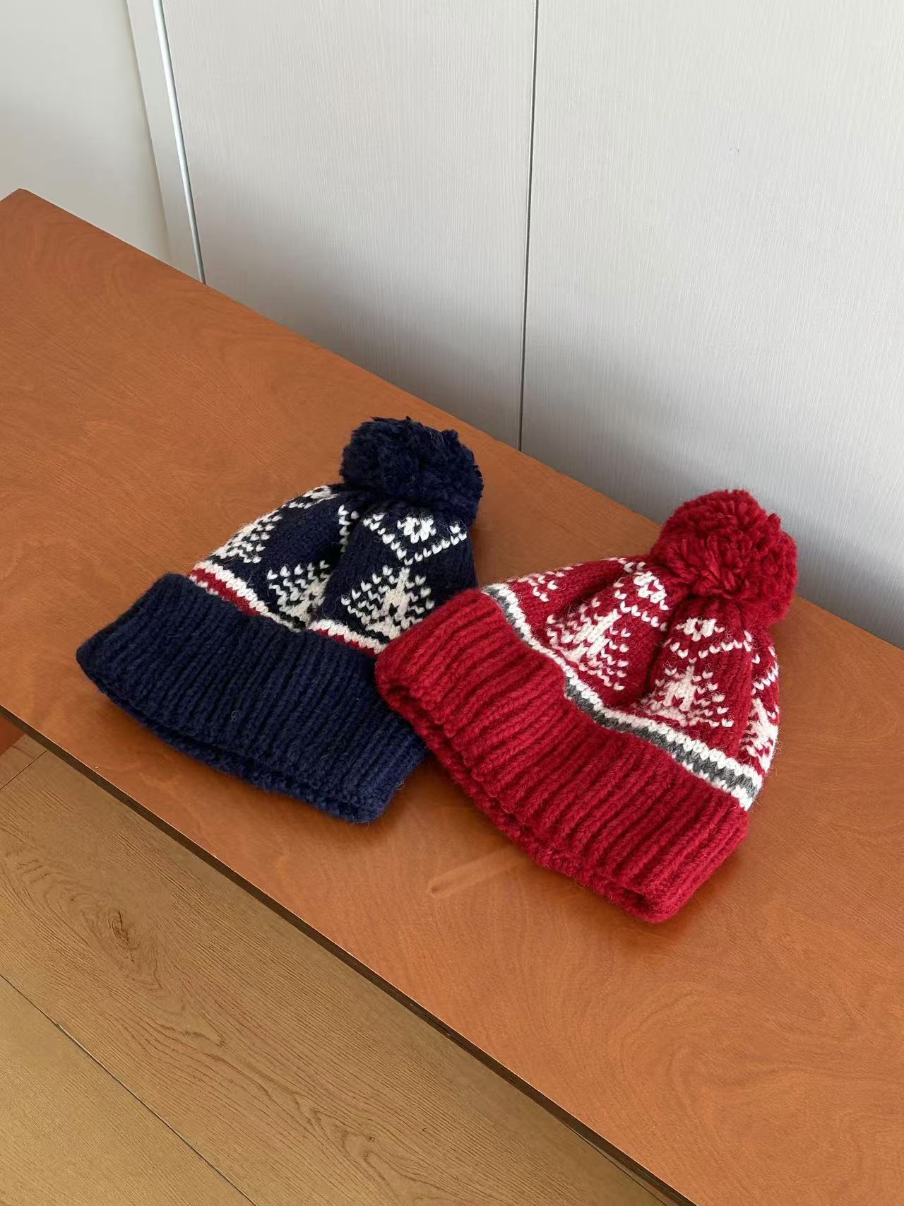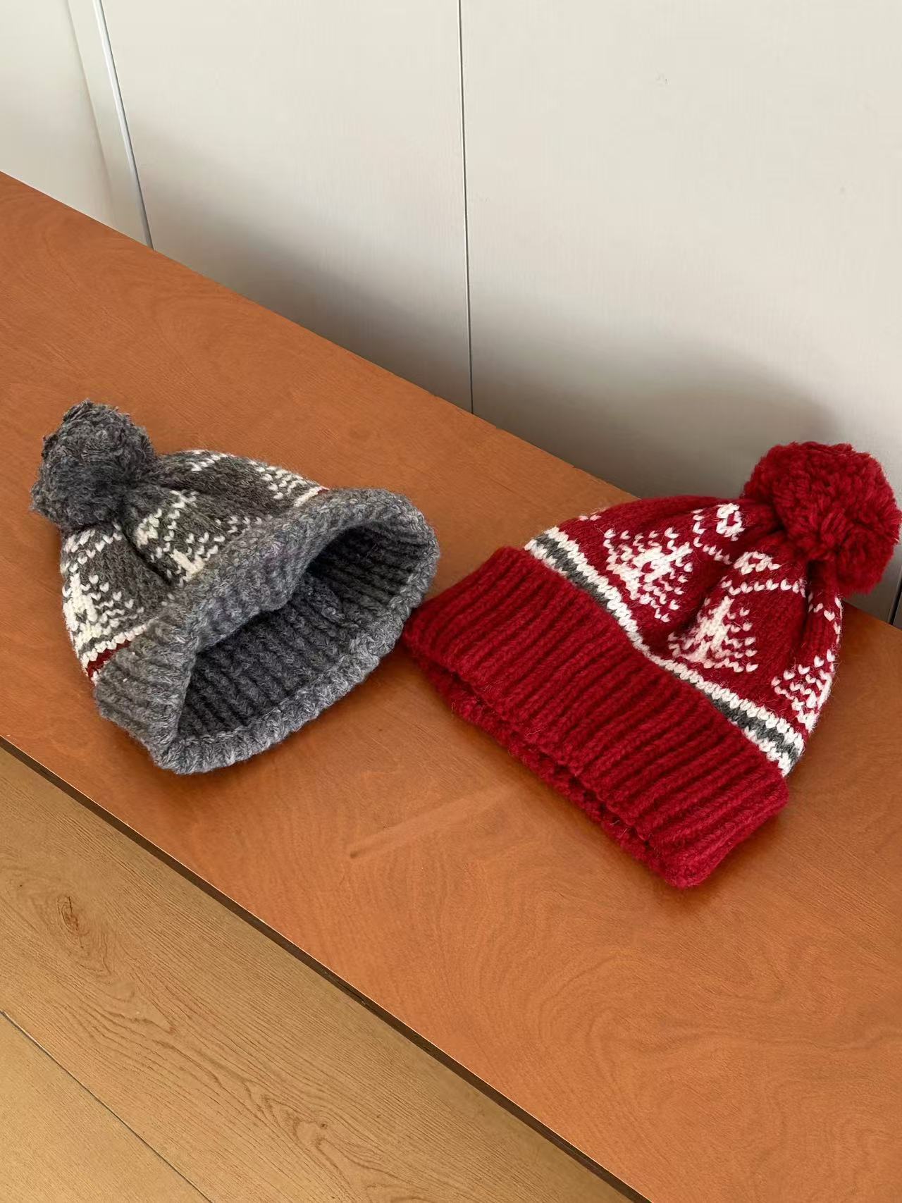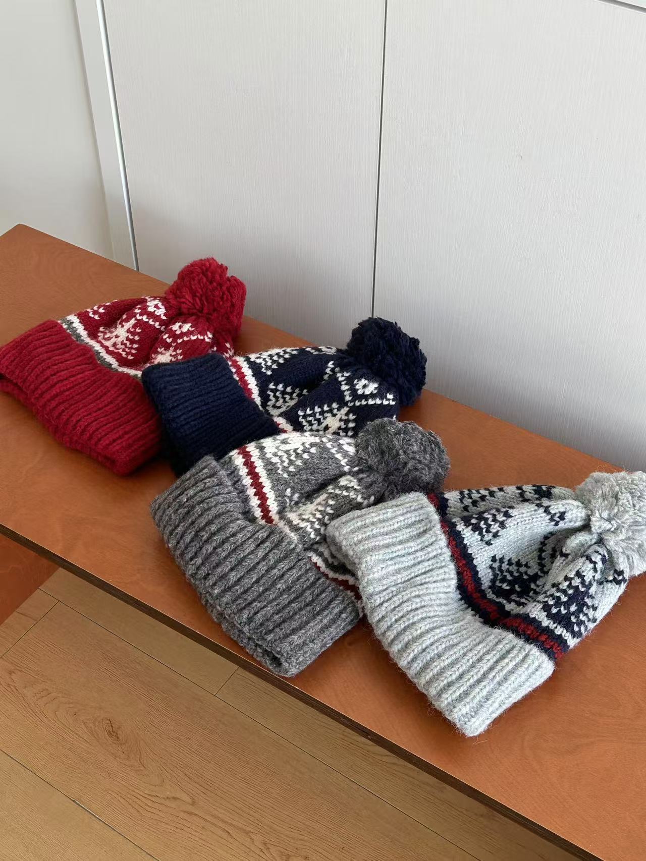 2024 빈티지 페어 아일랜드 스타일 울 모자 여성의 겨울 두꺼운 따뜻한 니트 모자 일본 스타일 귀여운 귀 보호 차가운 모자