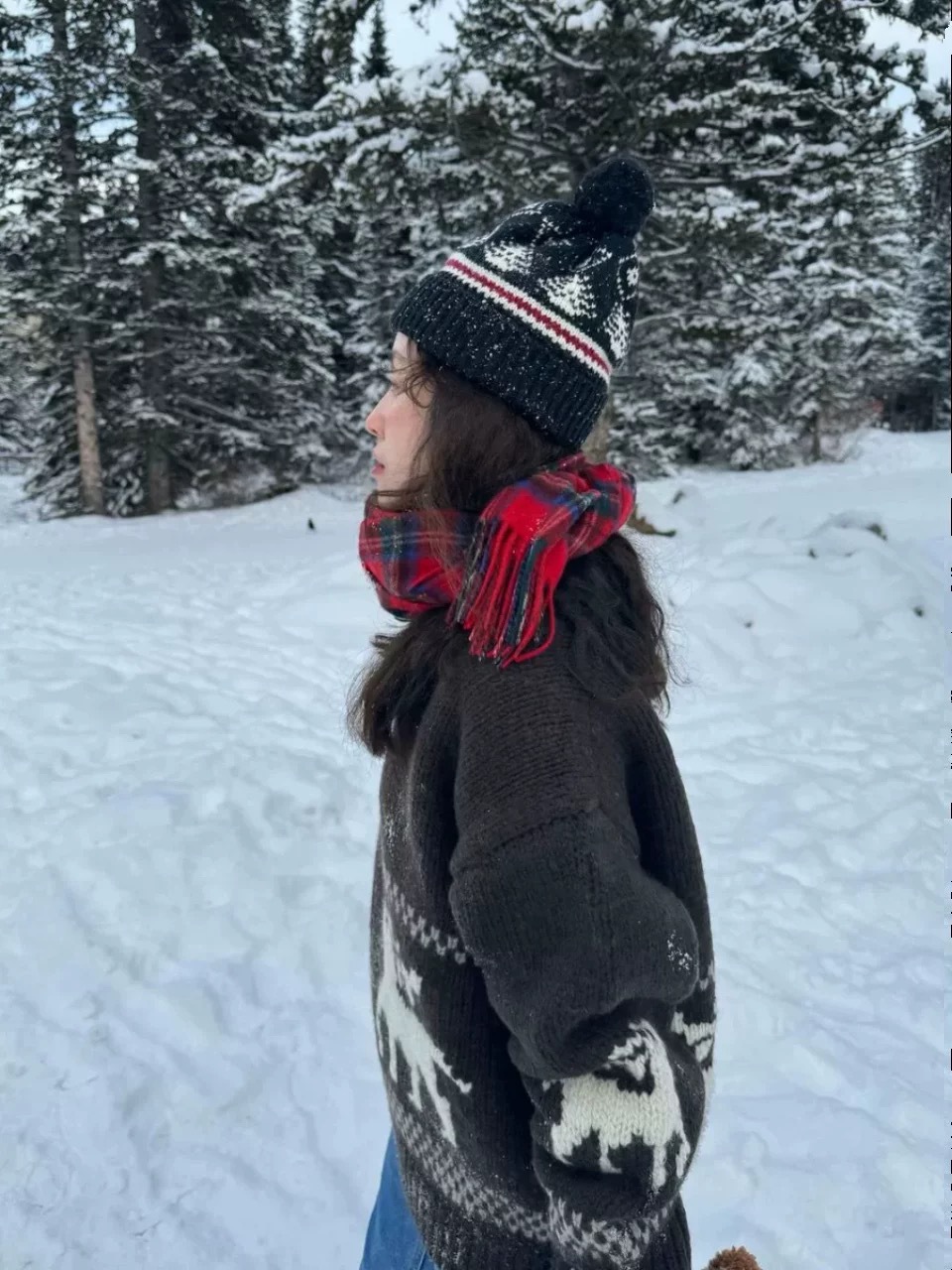 2024 빈티지 페어 아일랜드 스타일 울 모자 여성의 겨울 두꺼운 따뜻한 니트 모자 일본 스타일 귀여운 귀 보호 차가운 모자스토어 가기