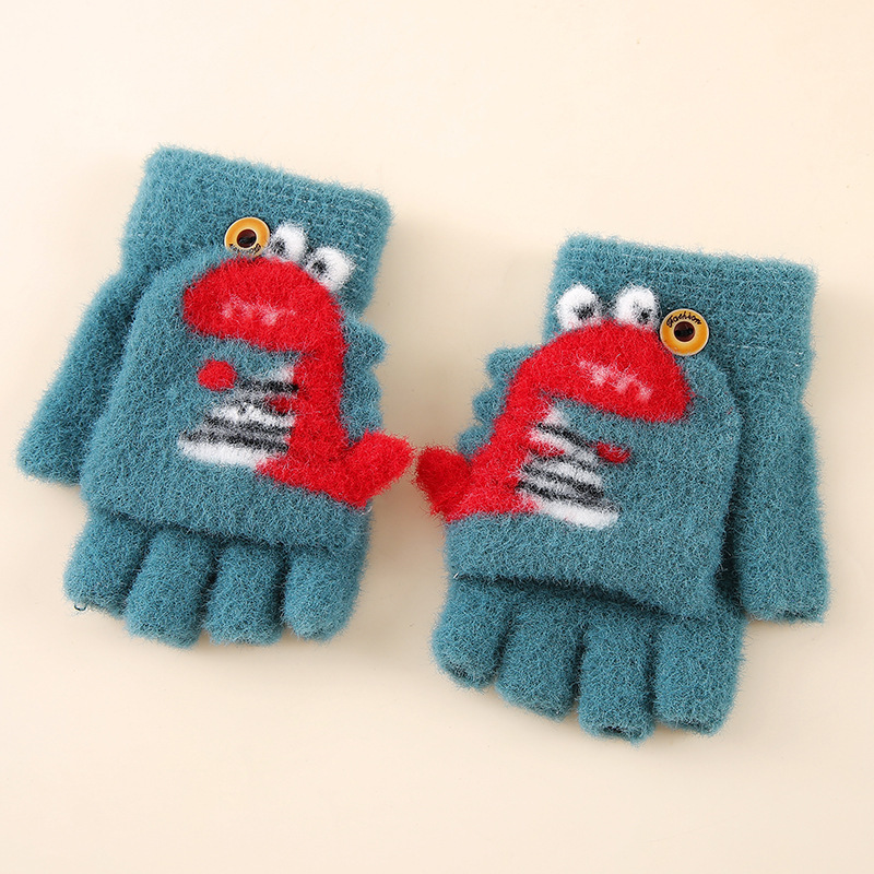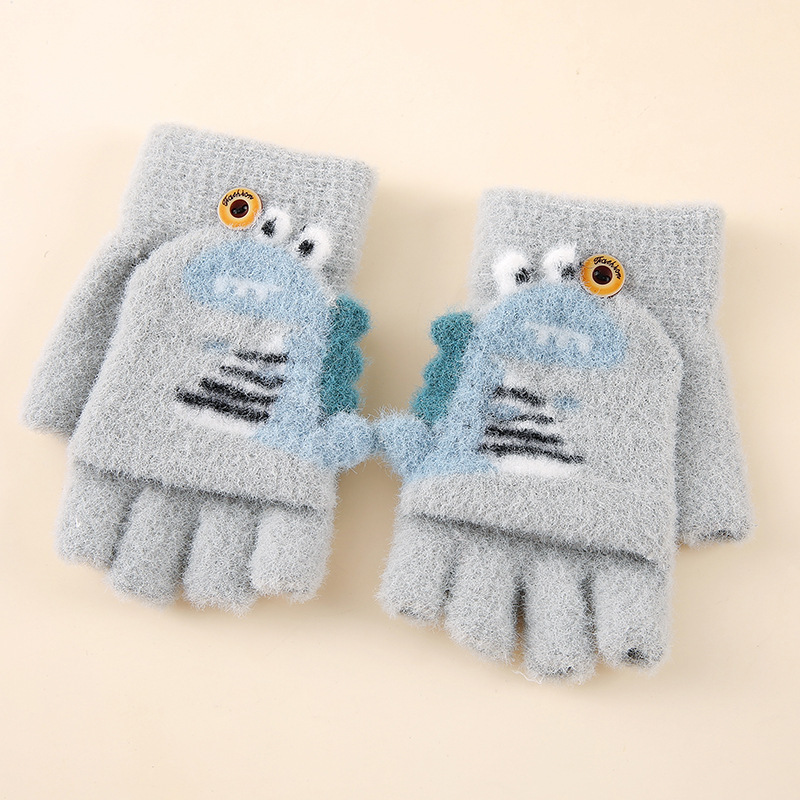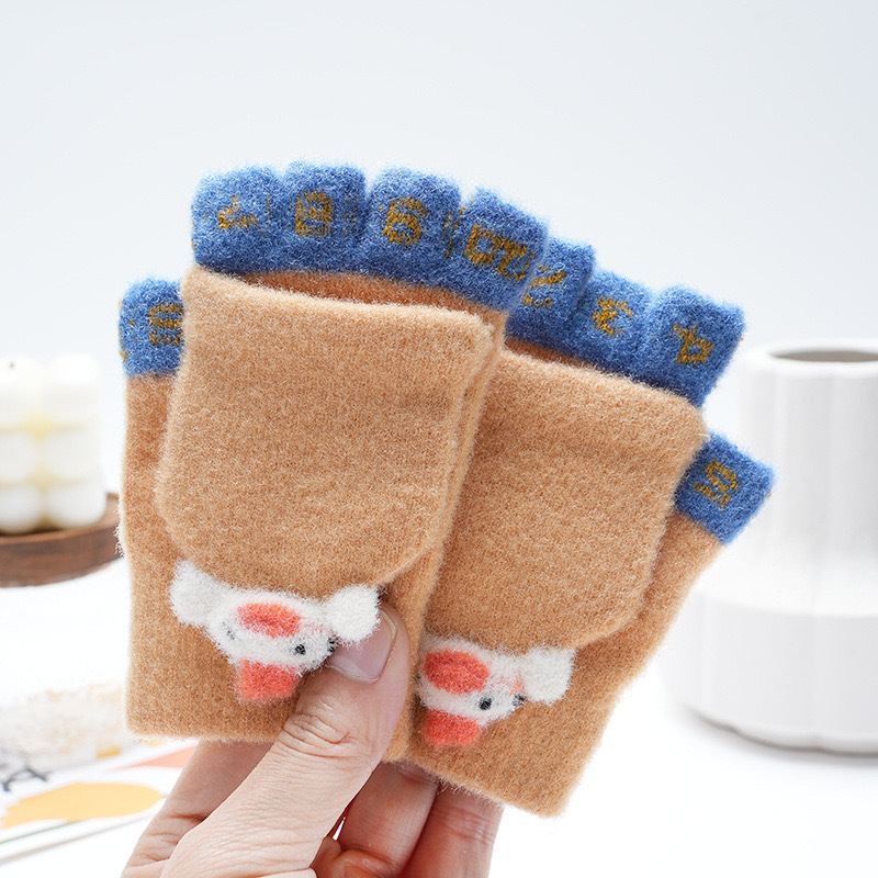 어린이 장갑 가을과 겨울 아기 소년과 소녀 두꺼운 따뜻한 장갑 어린이 5 손가락 초등학교 학생의 글쓰기 하프 핑거 플립 커버