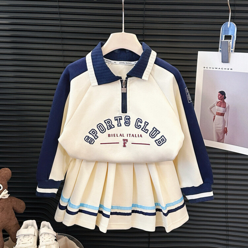여자 세트 봄 가을 옷 2024 새로운 어린이 캐주얼 한국 스타일 여자 테니스 옷 주름 치마 투피스 서양식스토어 가기