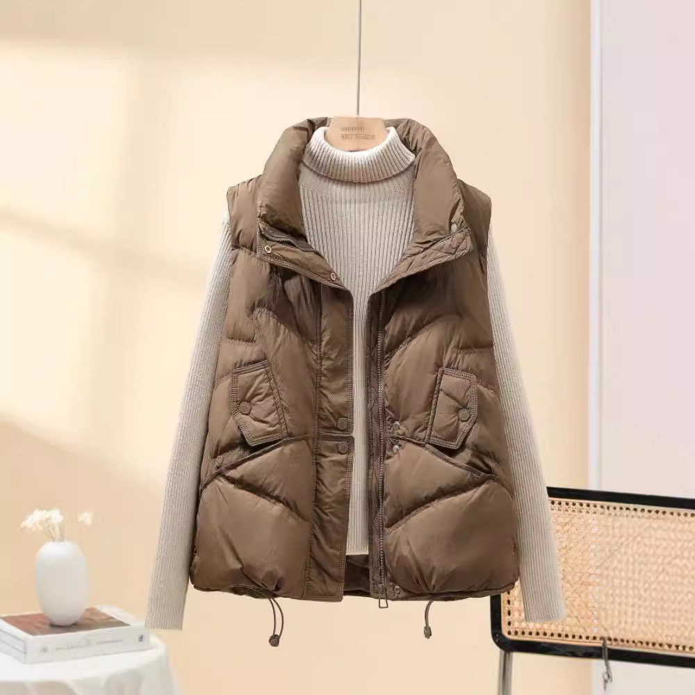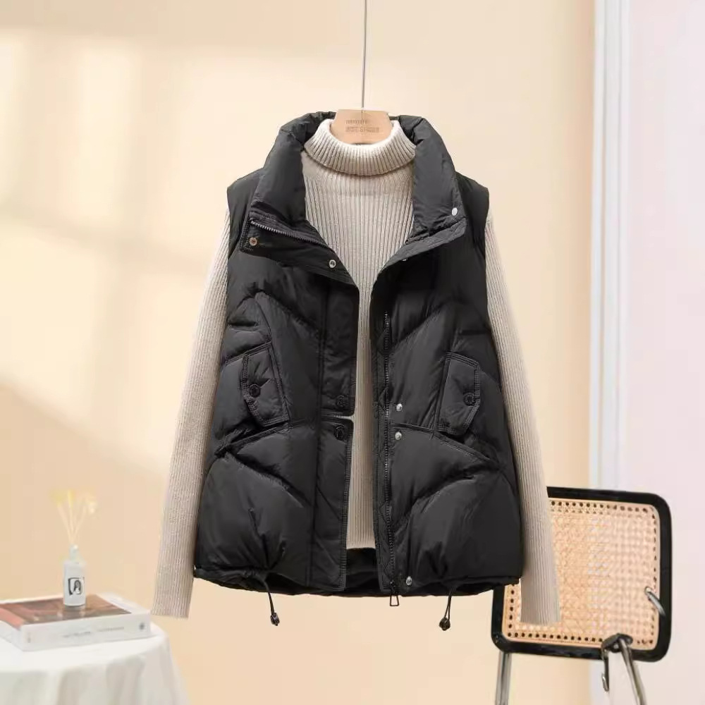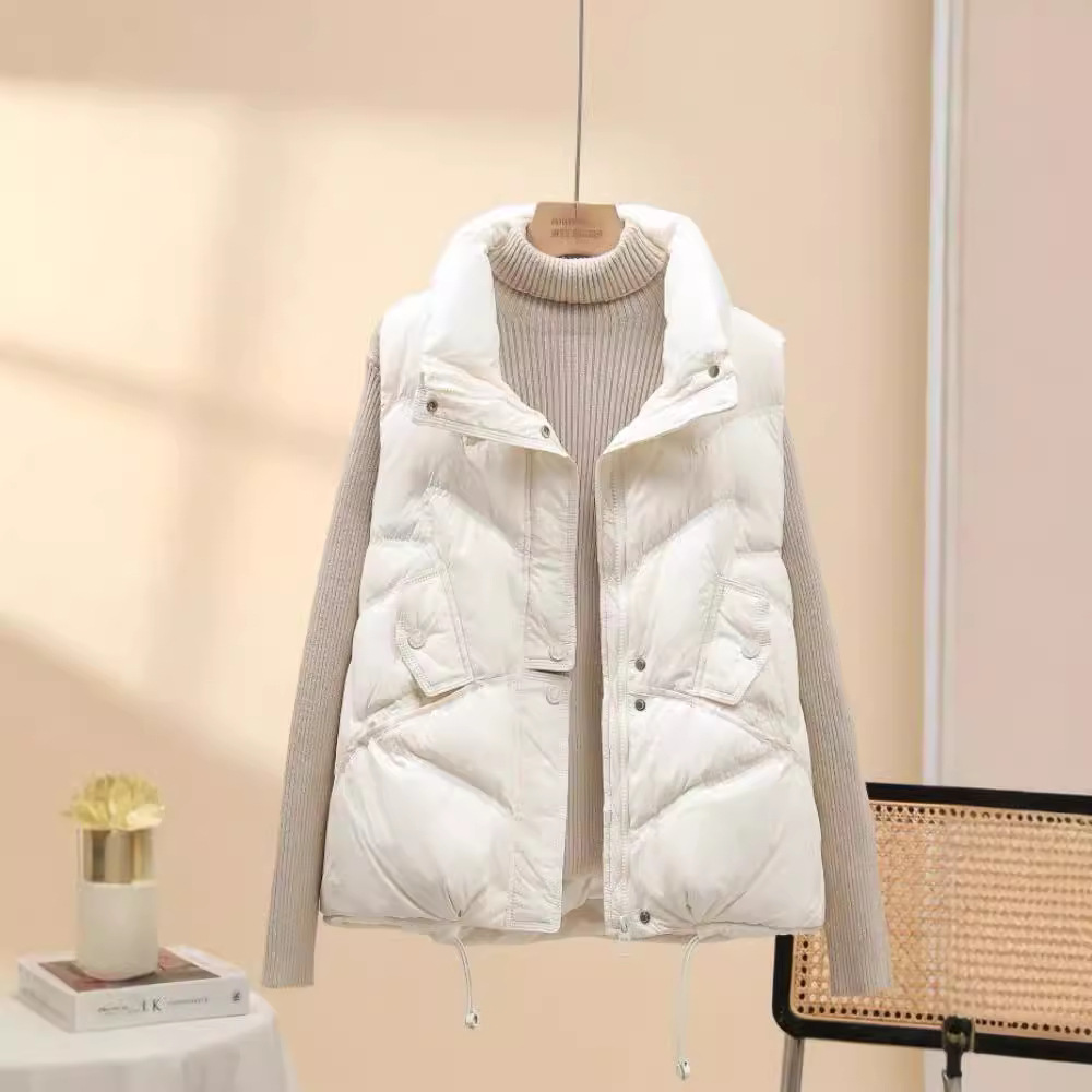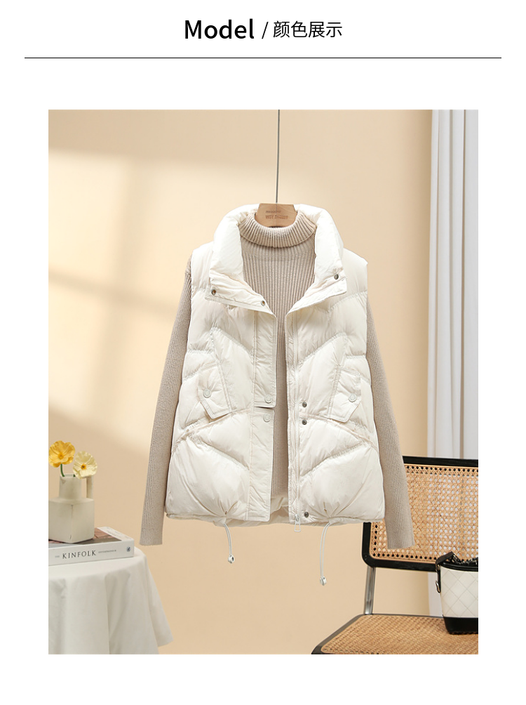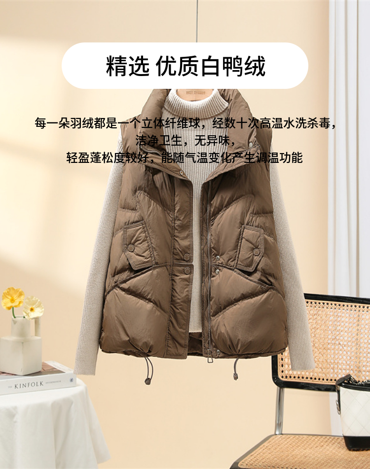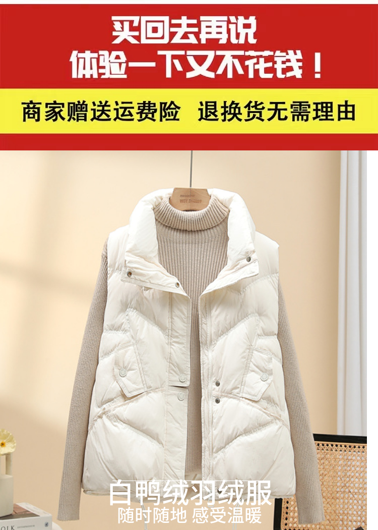 올해 인기 조끼 여성 2024 년 새 봄과 가을 조끼 흰 오리 아래 짧은 따뜻한 올 매치 양복 조끼