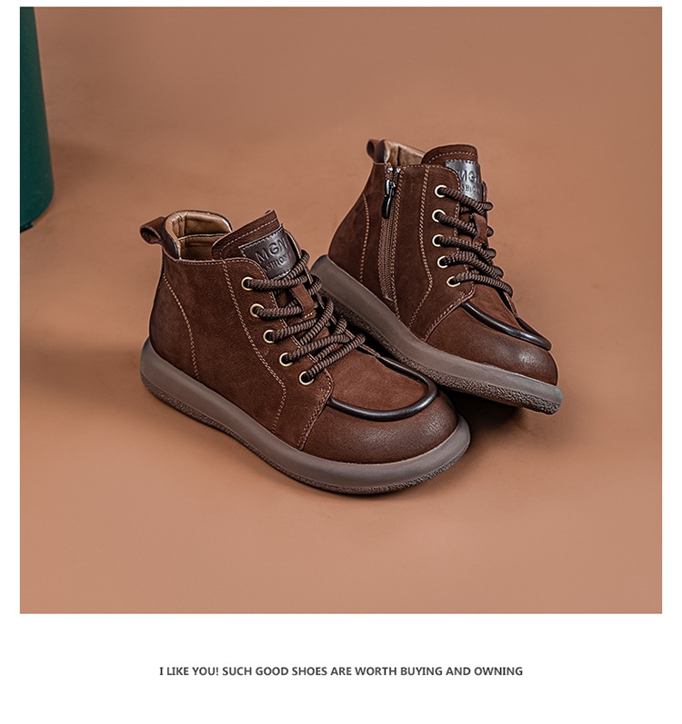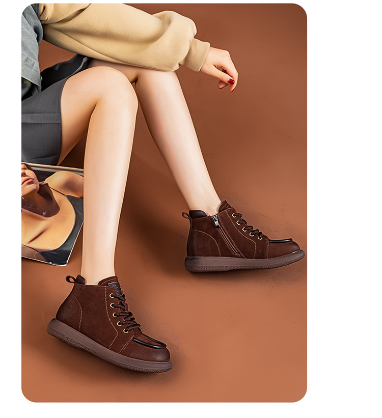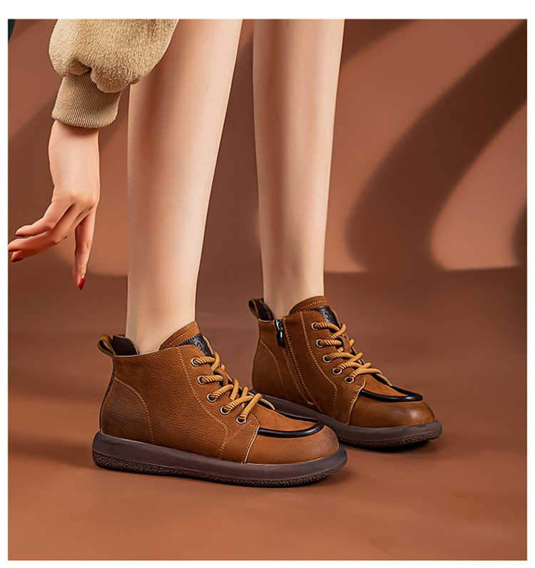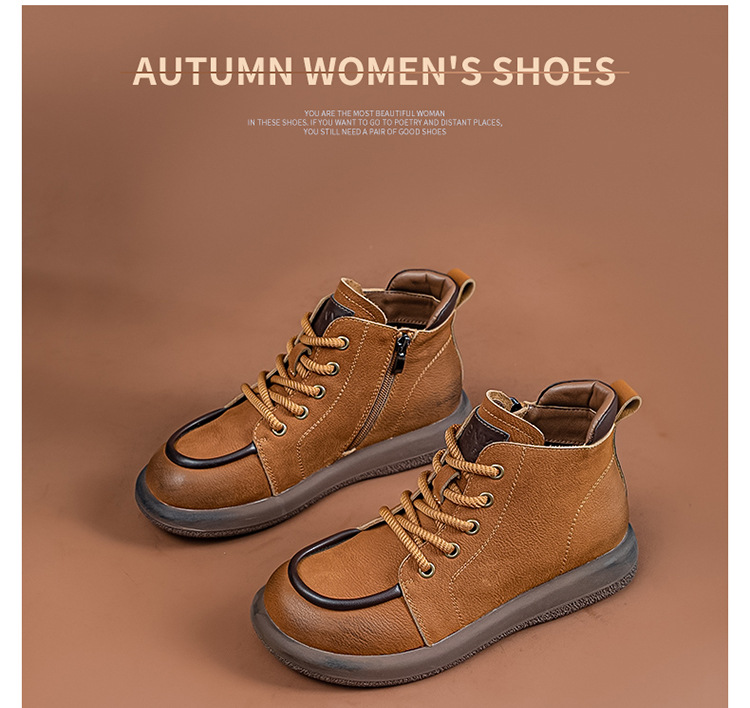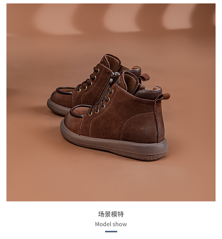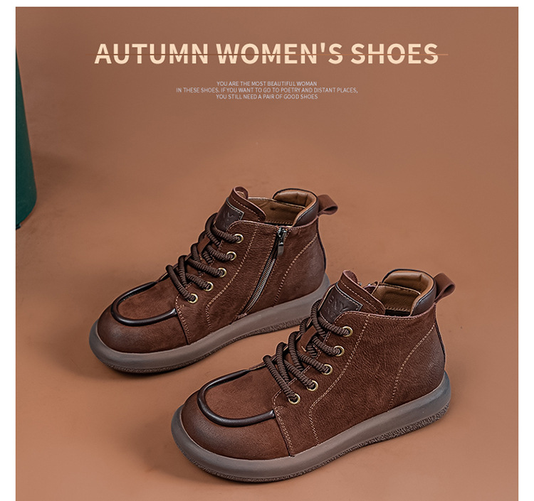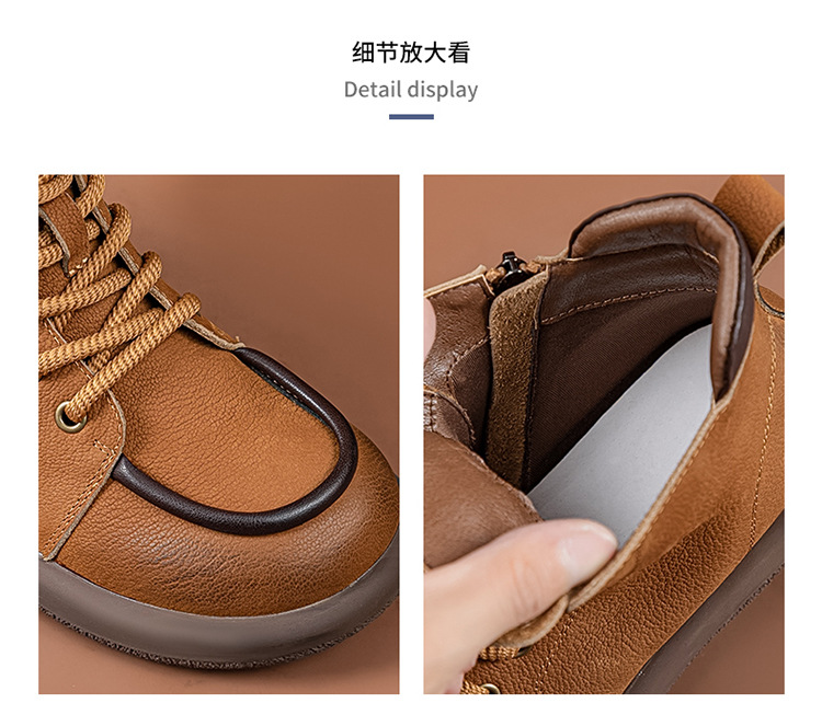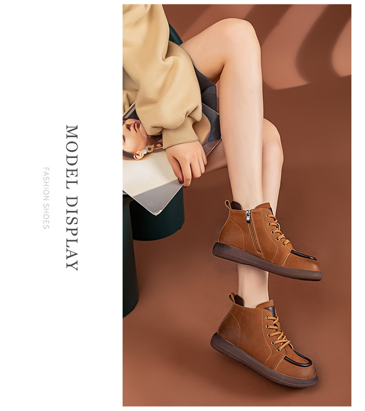 2024 가을 및 겨울 새로운 사이드 지퍼 부츠 정품 가죽 빈티지 쇼트 부츠 여성 탑 레이어 Cowhide 캐주얼 플랫 라운드 발가락 짧은 부츠스토어 가기