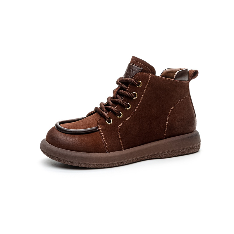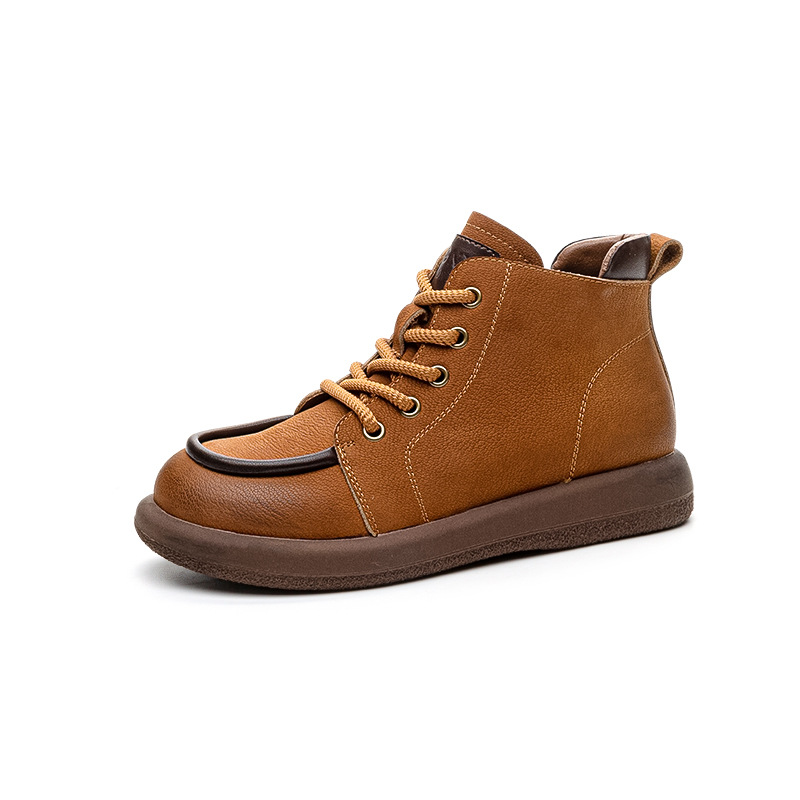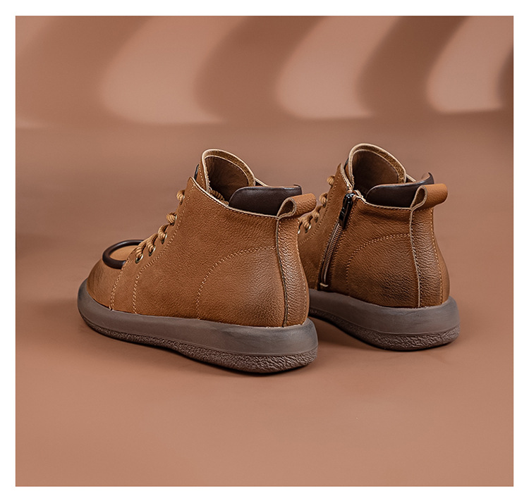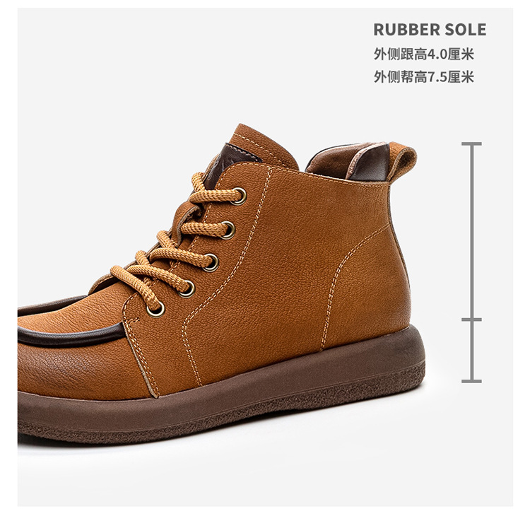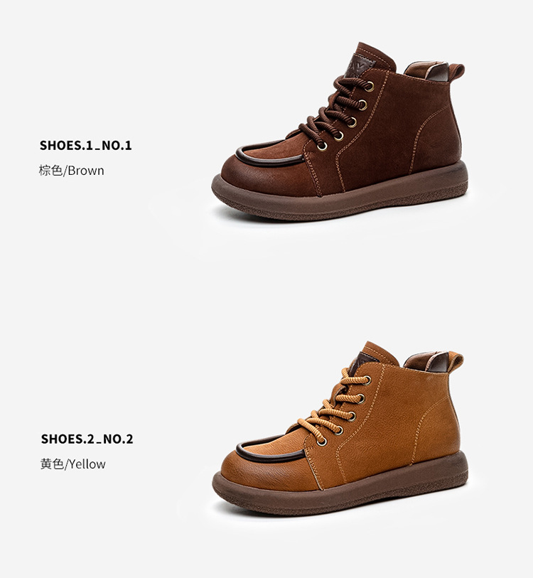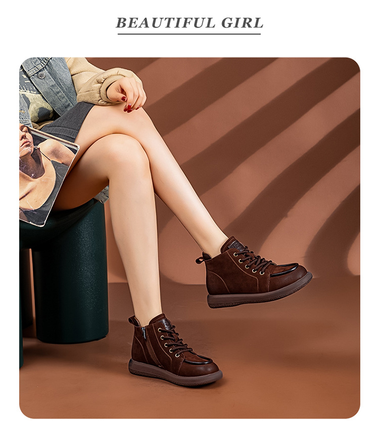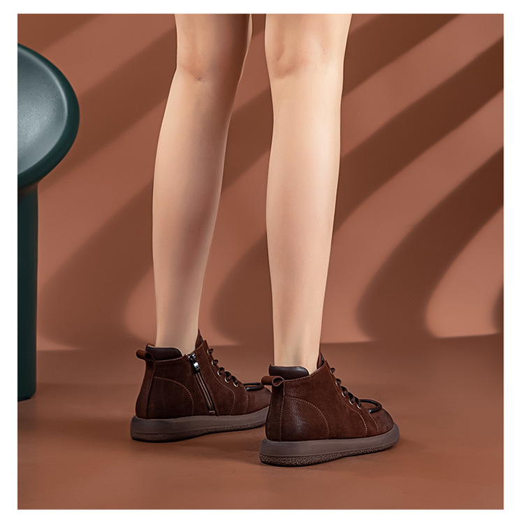 2024 가을 및 겨울 새로운 사이드 지퍼 부츠 정품 가죽 빈티지 쇼트 부츠 여성 탑 레이어 Cowhide 캐주얼 플랫 라운드 발가락 짧은 부츠스토어 가기