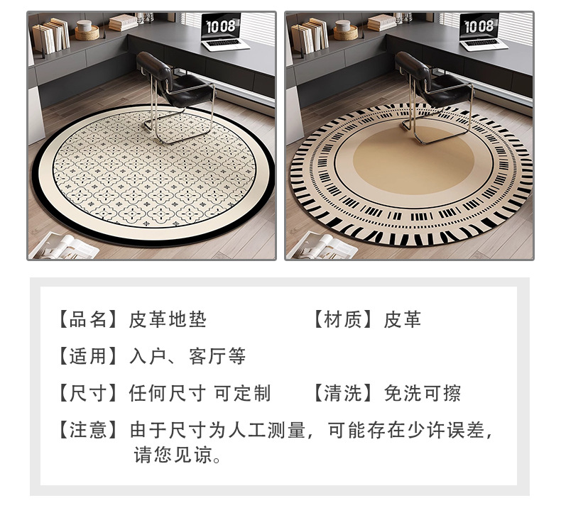 중간 골동품 라운드 먼지 방지 가죽 바닥 매트 연구 홈 컴퓨터 의자 비 슬립 방수 매트 고급 마모 방지 바닥 매트스토어 가기