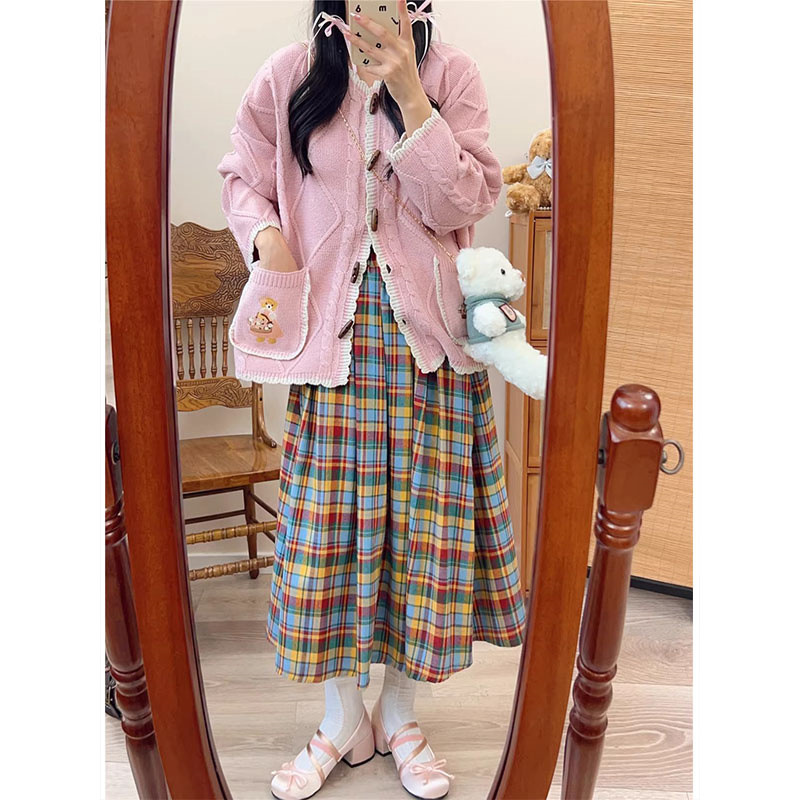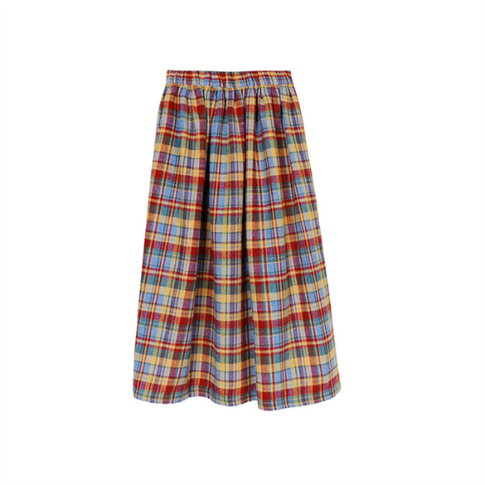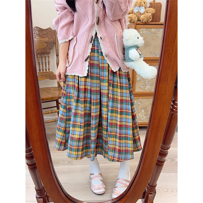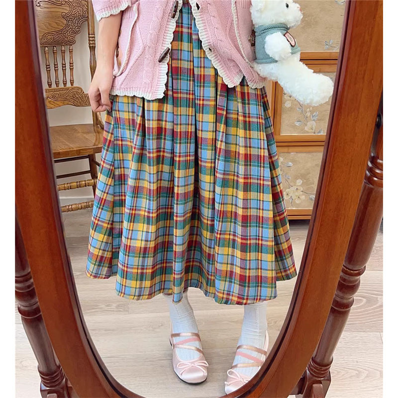 벨링 골동품 네온 체크 무늬 울 스커트 일본 A 라인 원피스 가을과 겨울 크리스마스 롱 원피스스토어 가기