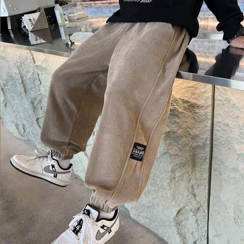 소년 바지 봄과 가을 어린이 가을 가을 가을 2024 새로운 잘 생긴 소년 카키 코듀로이 바지