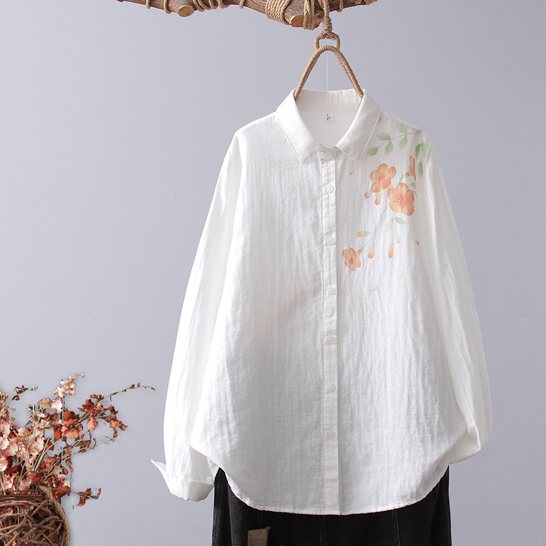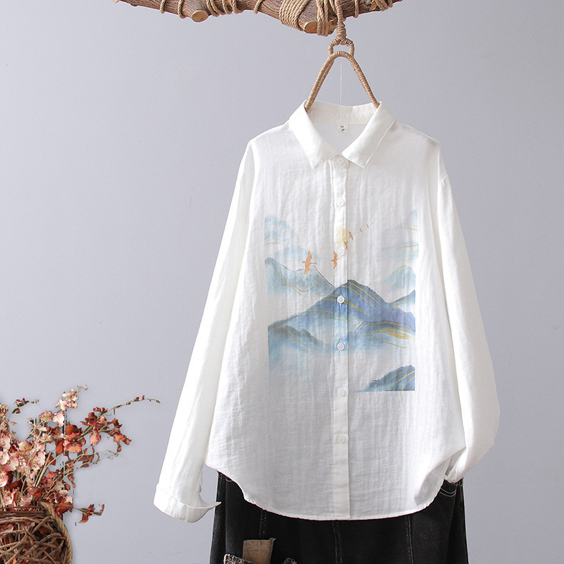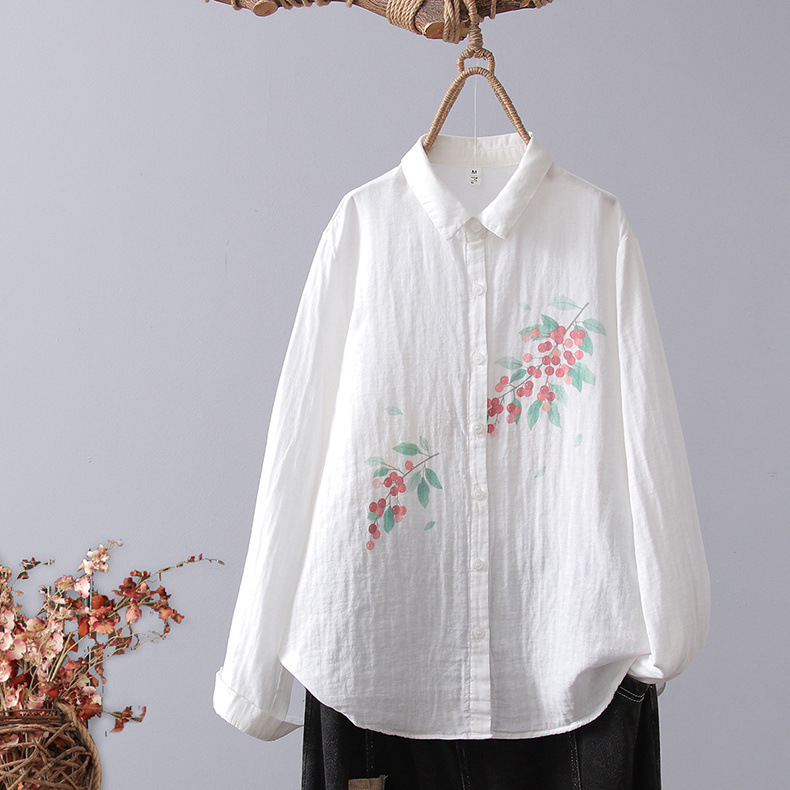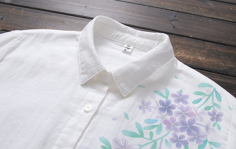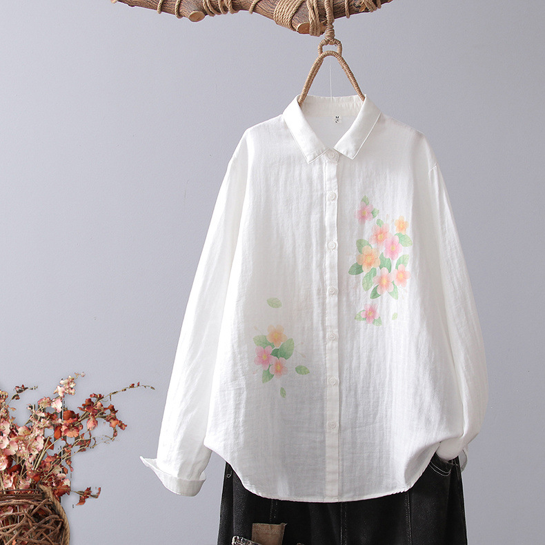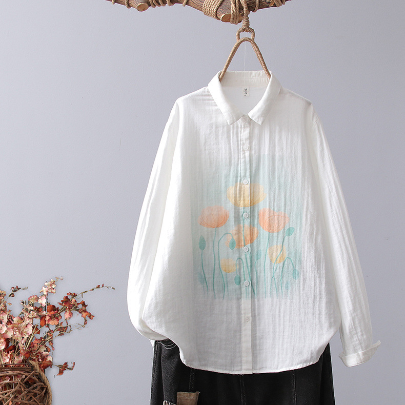 일본 모리 여성의 새로운 만화 꽃 인쇄 더블 레이어 원사 피부면 카디건 셔츠 여성베이스 셔츠 긴 소매스토어 가기