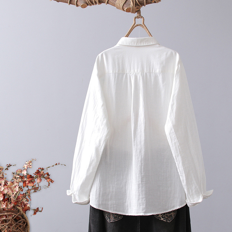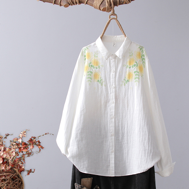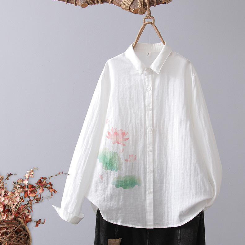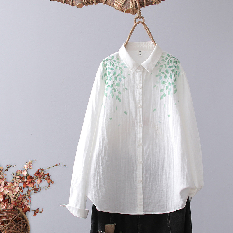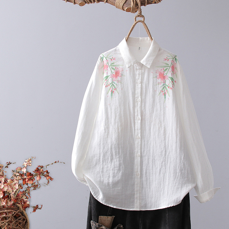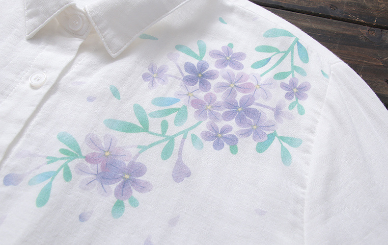 일본 모리 여성의 새로운 만화 꽃 인쇄 더블 레이어 원사 피부면 카디건 셔츠 여성베이스 셔츠 긴 소매스토어 가기