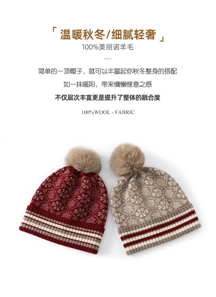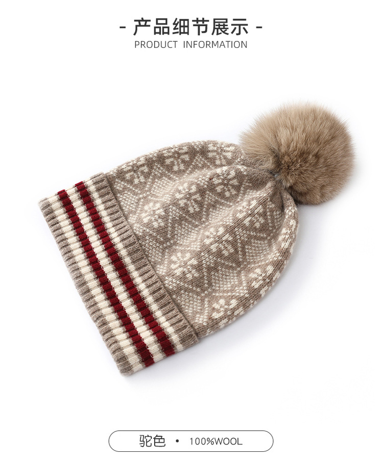 2024 겨울 한국 스타일 순수한 양모 모자 여성 모피 볼 모자 니트 자카드 패션 따뜻한 차가운 귀 보호 모자 차가운 모자스토어 가기