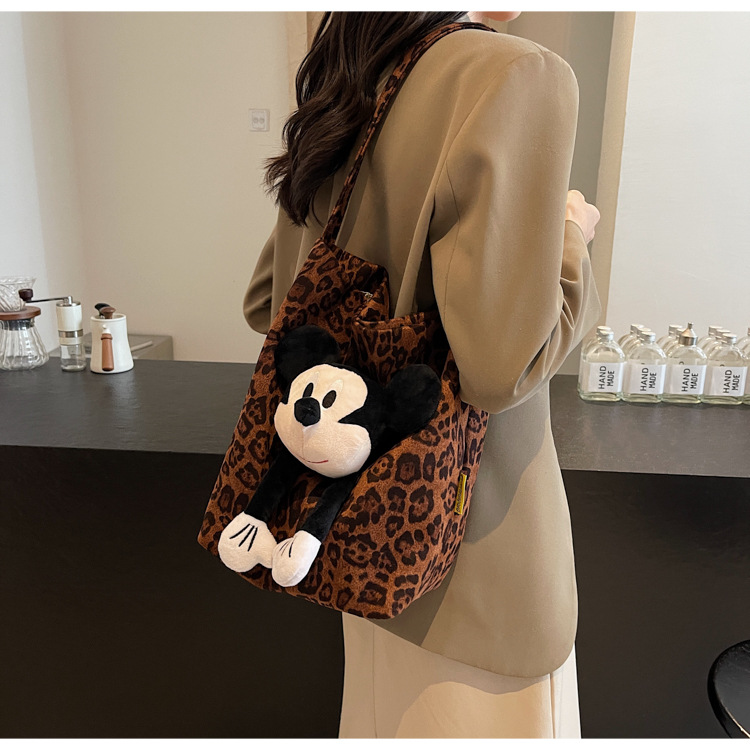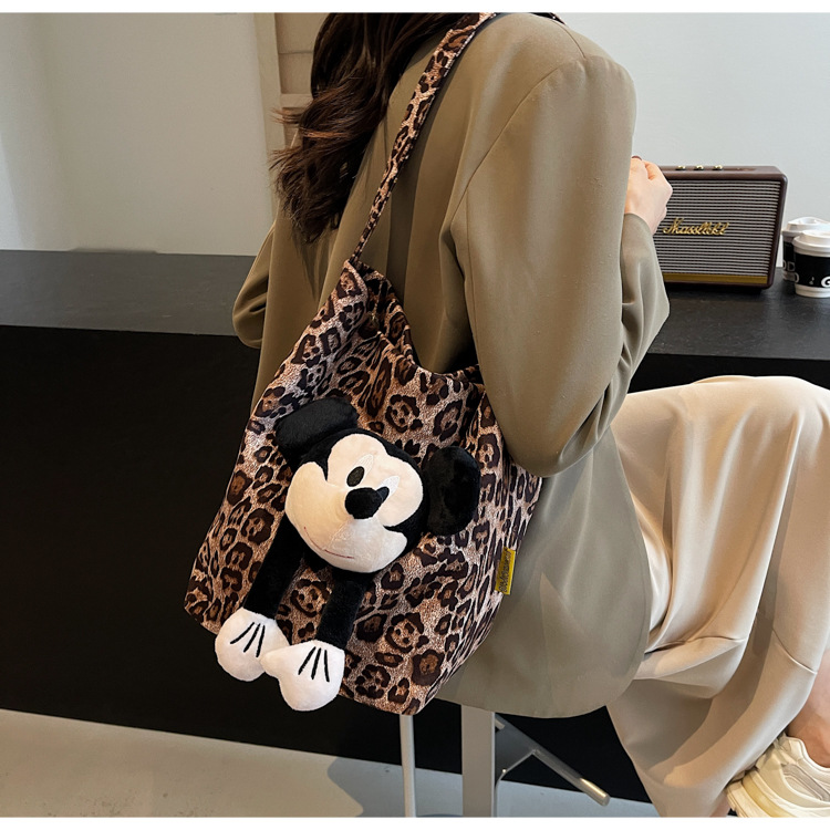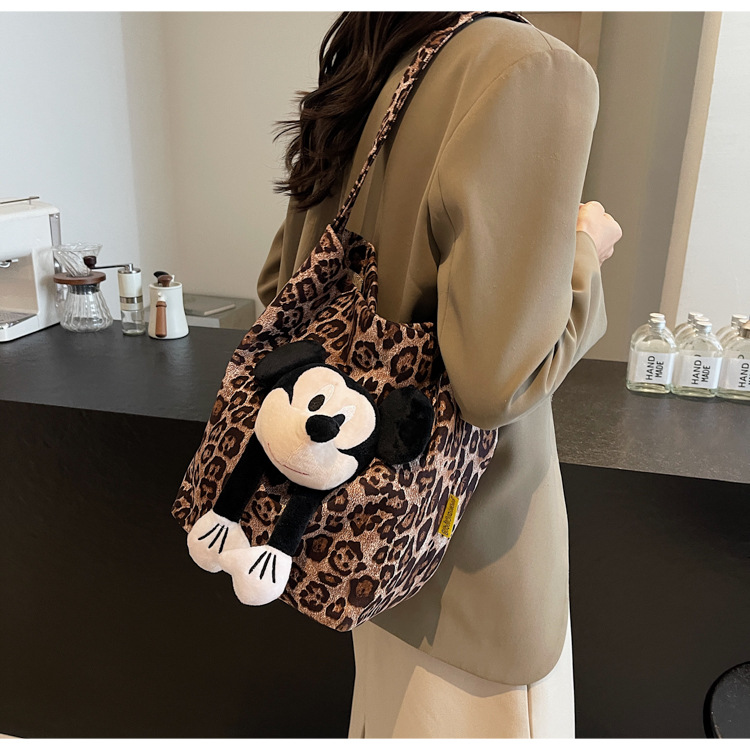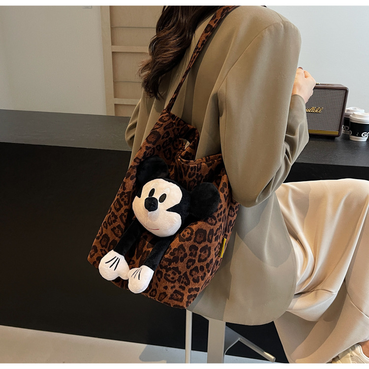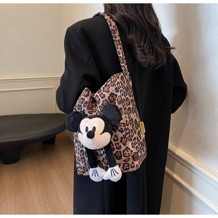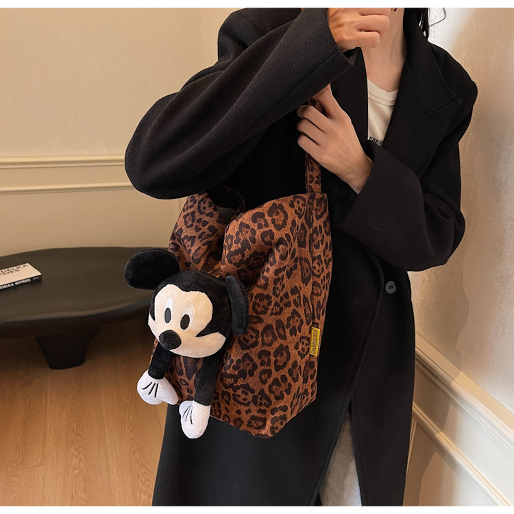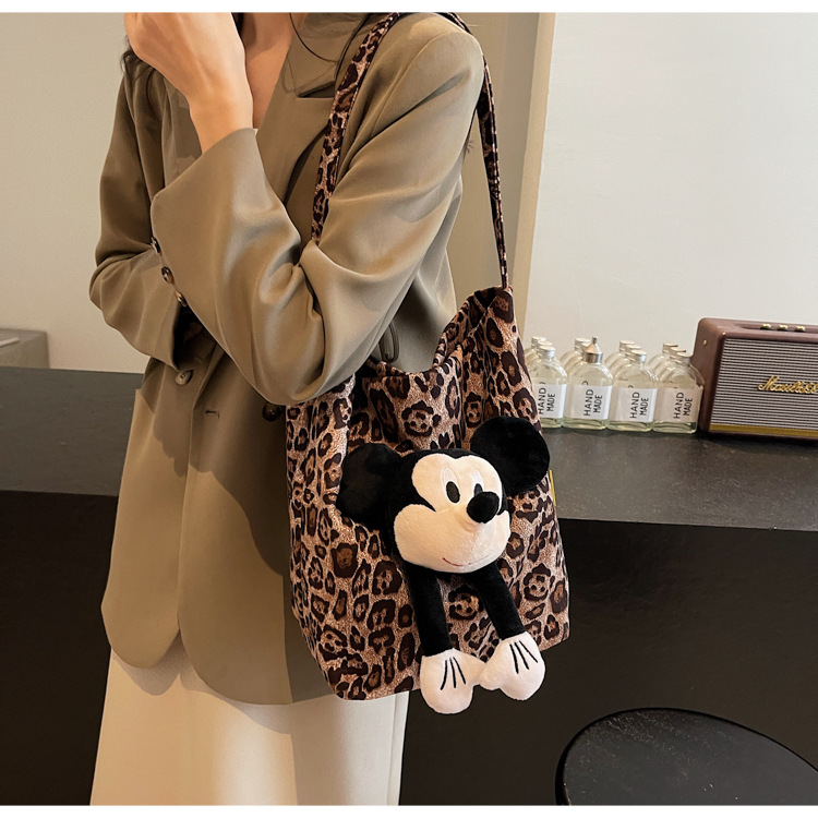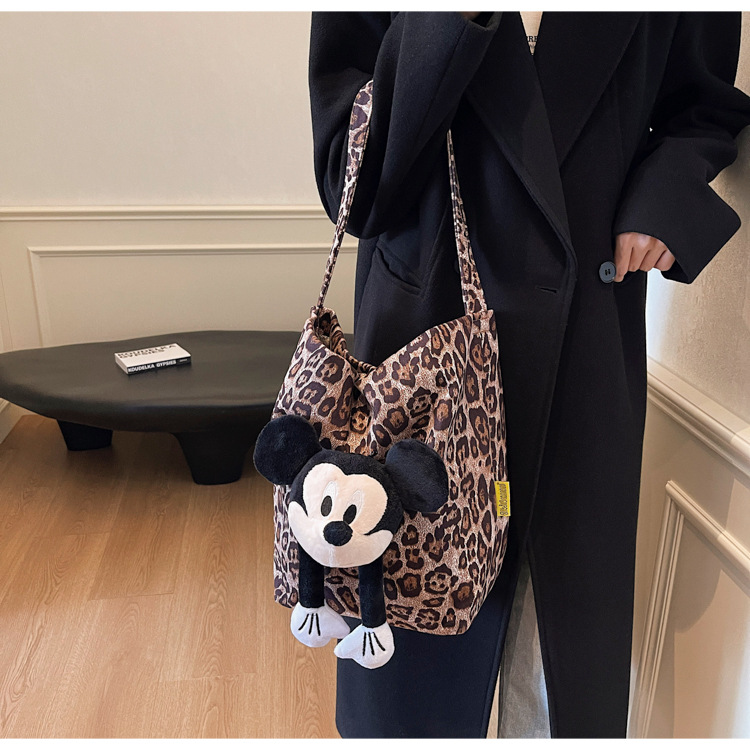 한국 표범 가방 여성의 귀여운 만화 속옷 가방 유행 대용량 토트 백 작업 통근 어깨 배낭
