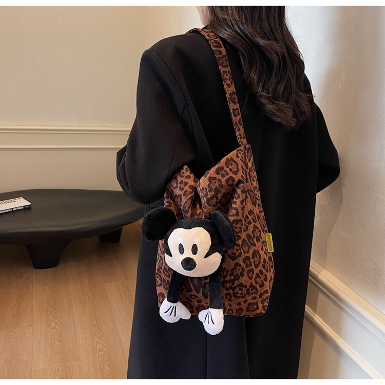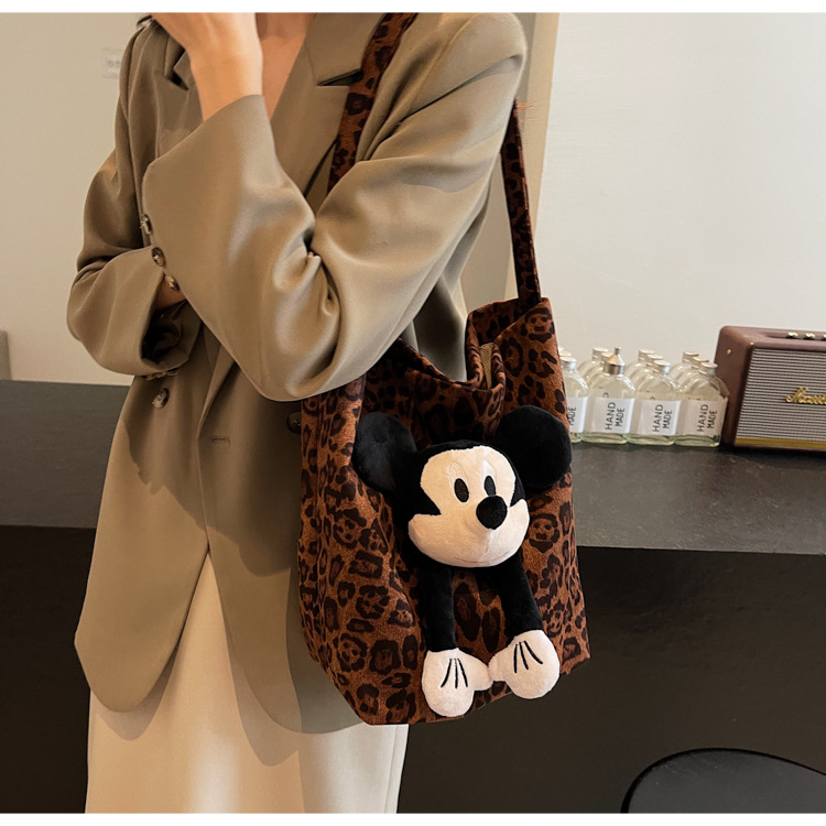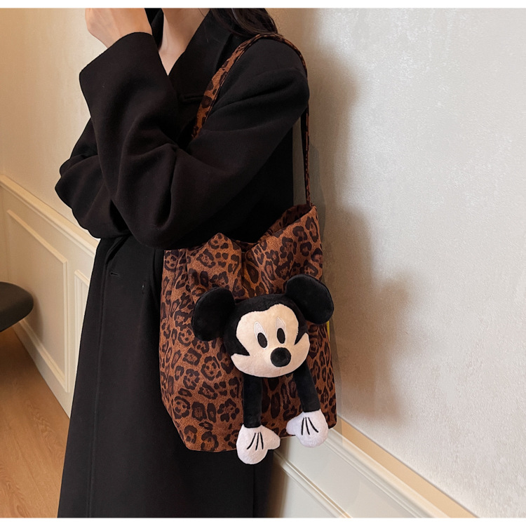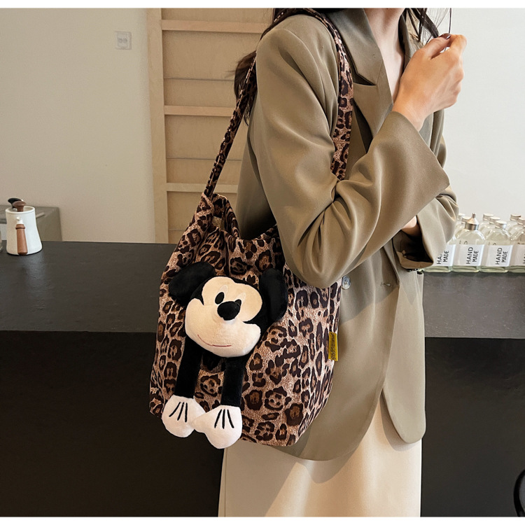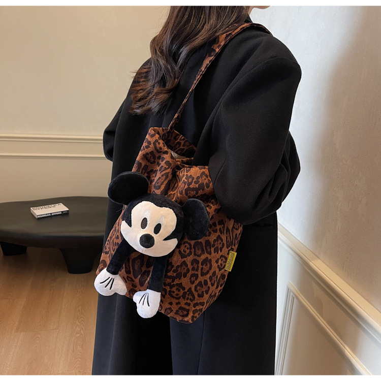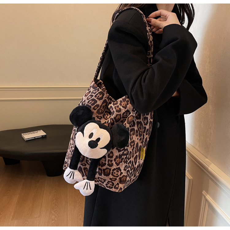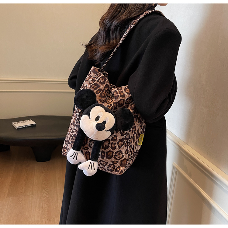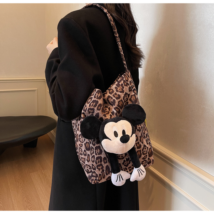 한국 표범 가방 여성의 귀여운 만화 속옷 가방 유행 대용량 토트 백 작업 통근 어깨 배낭