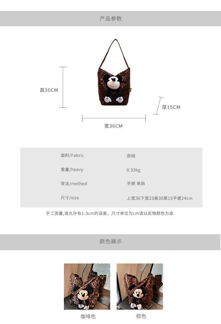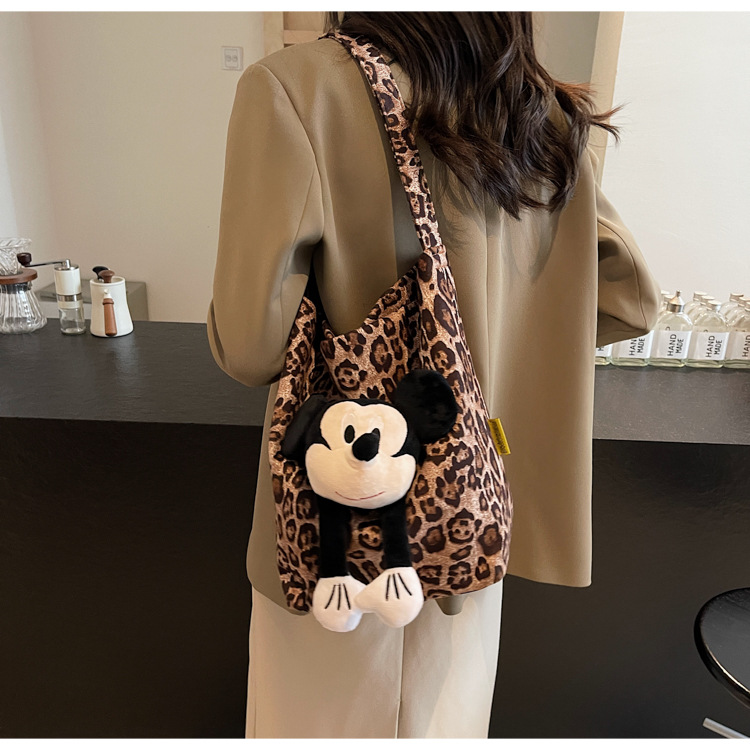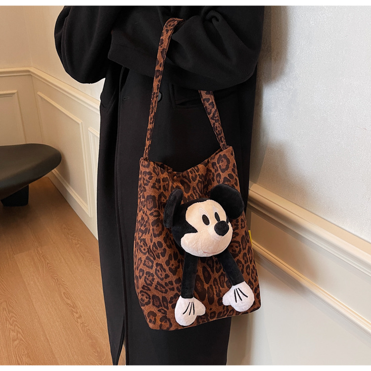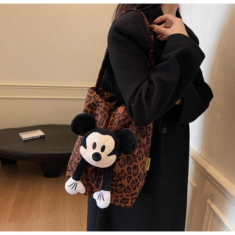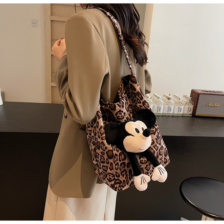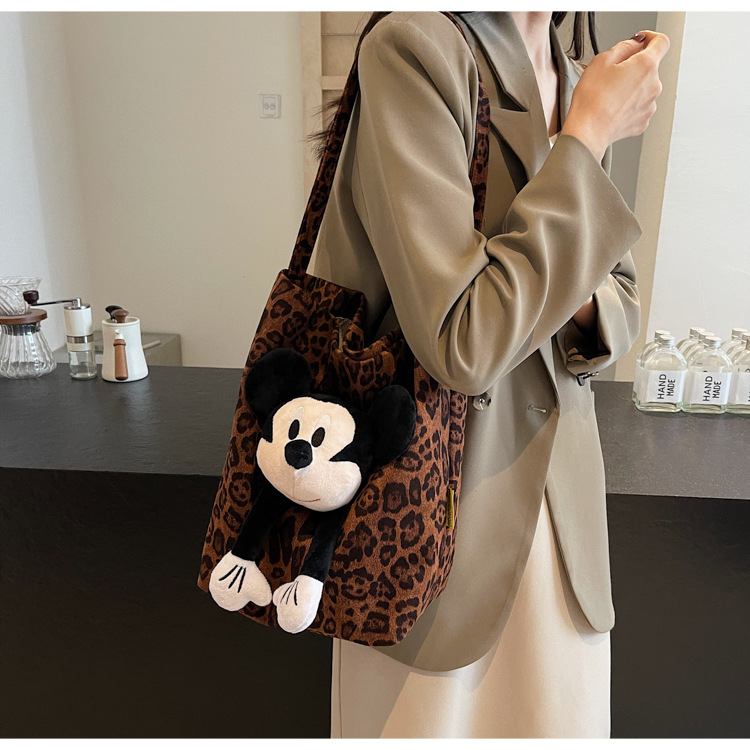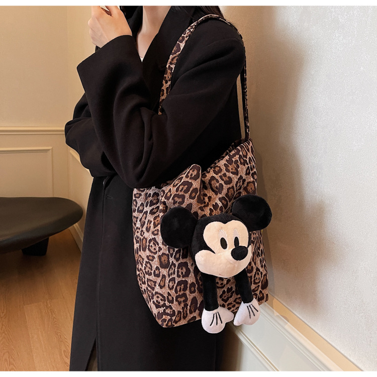 한국 표범 가방 여성의 귀여운 만화 속옷 가방 유행 대용량 토트 백 작업 통근 어깨 배낭