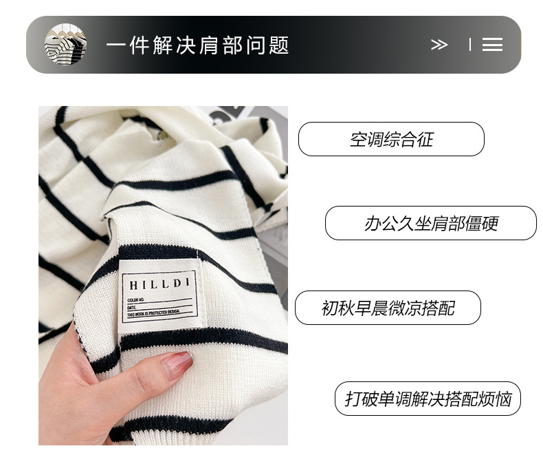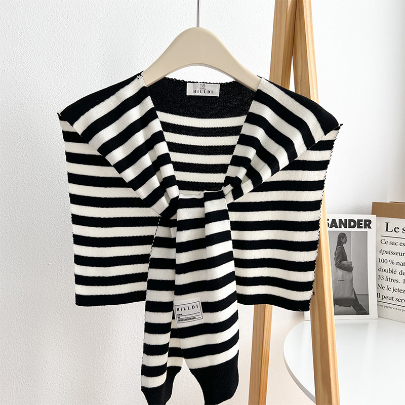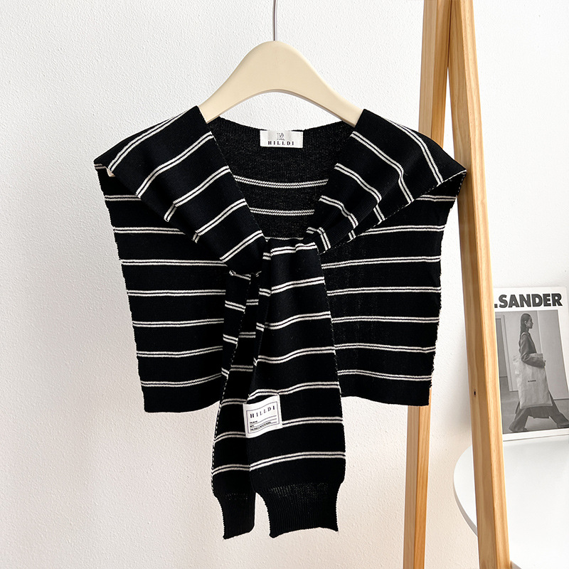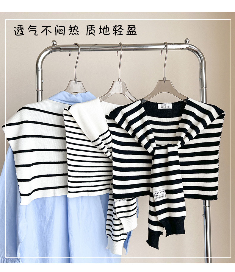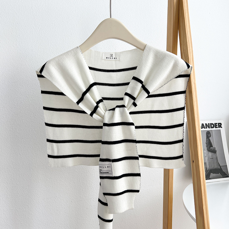 Wang Xinling 같은 스타일 줄무늬 니트 작은 목도리 여성의 봄과 가을 외부 일치하는 셔츠 티셔츠 Ware Shoulder 에어컨 방 목 보호스토어 가기