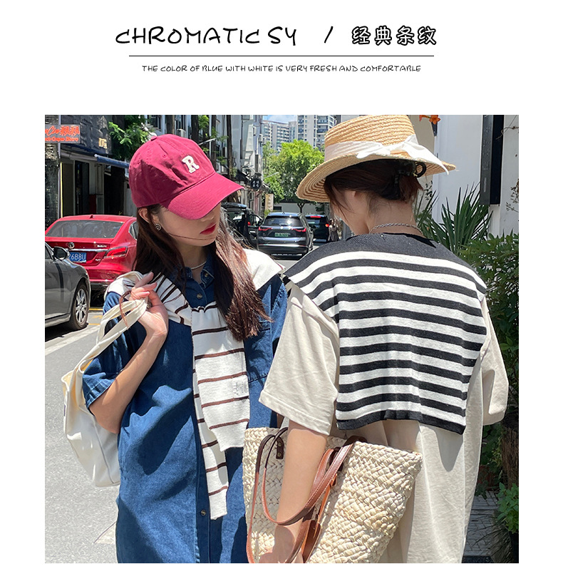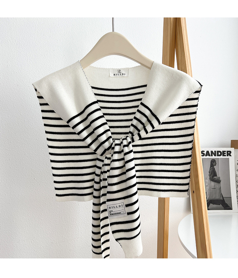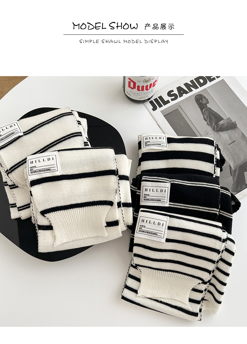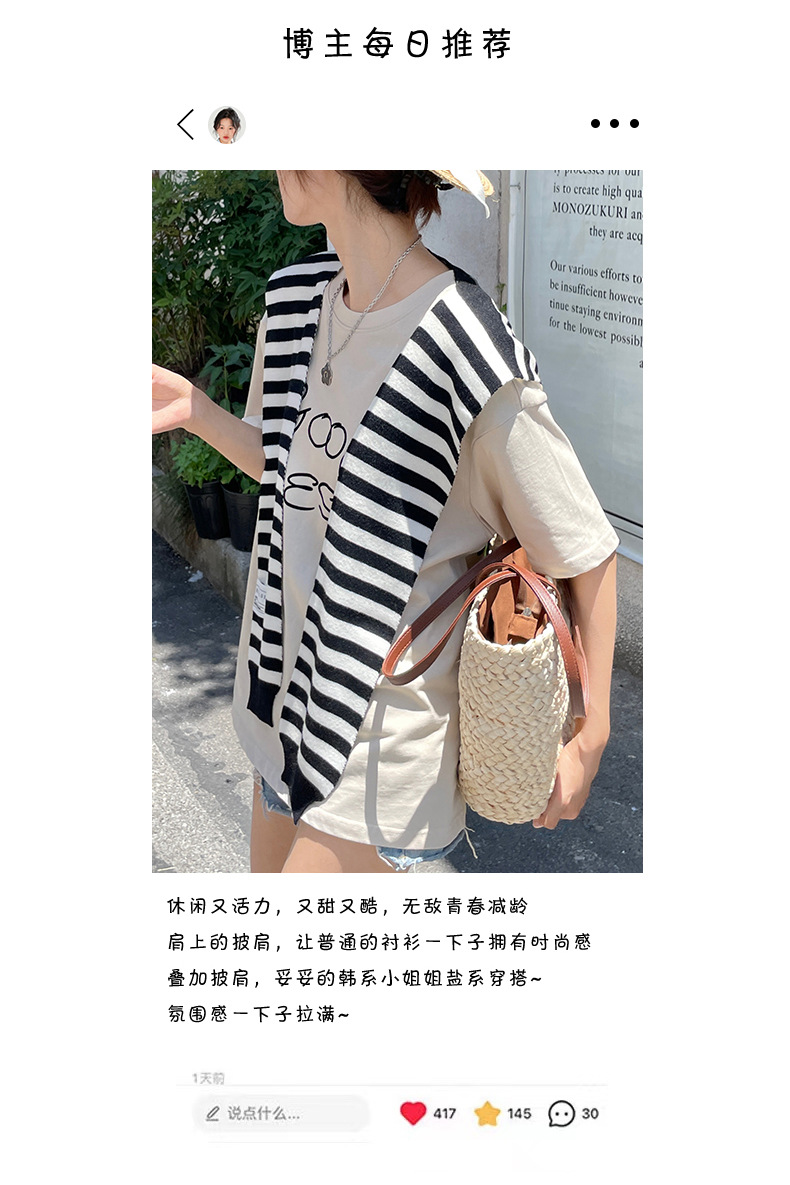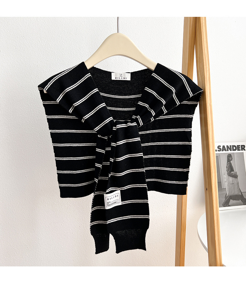 Wang Xinling 같은 스타일 줄무늬 니트 작은 목도리 여성의 봄과 가을 외부 일치하는 셔츠 티셔츠 Ware Shoulder 에어컨 방 목 보호스토어 가기