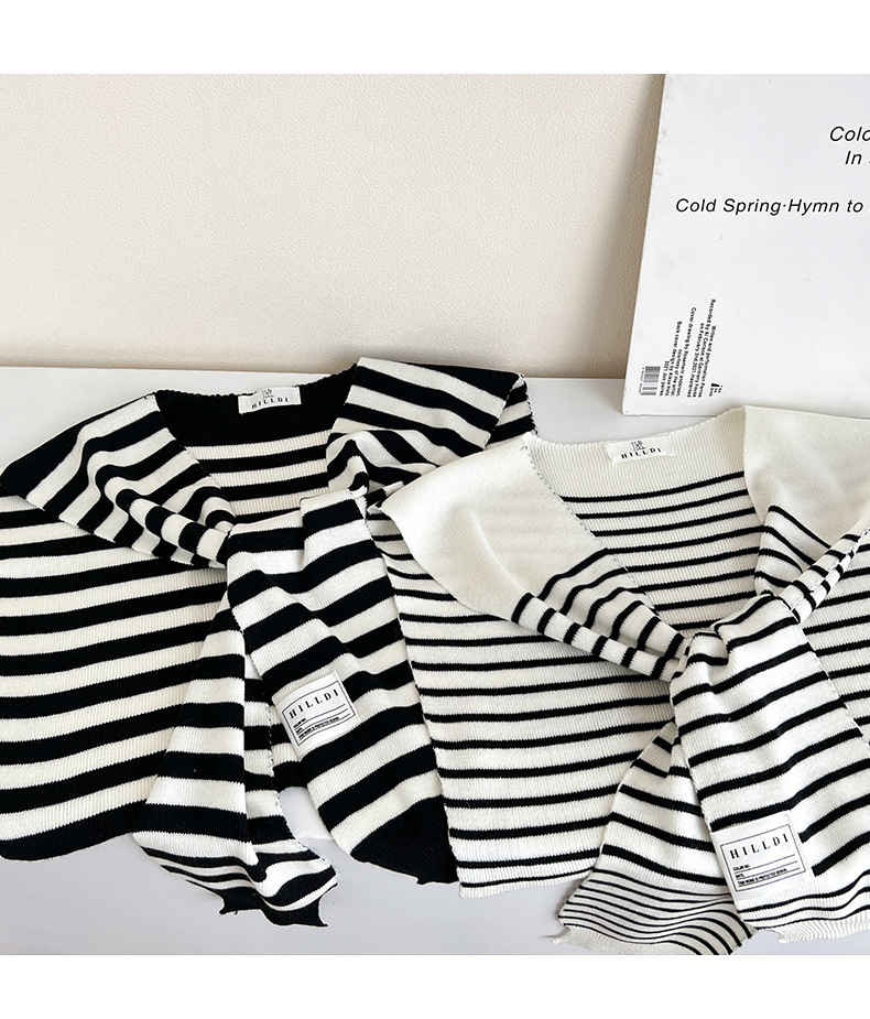 Wang Xinling 같은 스타일 줄무늬 니트 작은 목도리 여성의 봄과 가을 외부 일치하는 셔츠 티셔츠 Ware Shoulder 에어컨 방 목 보호