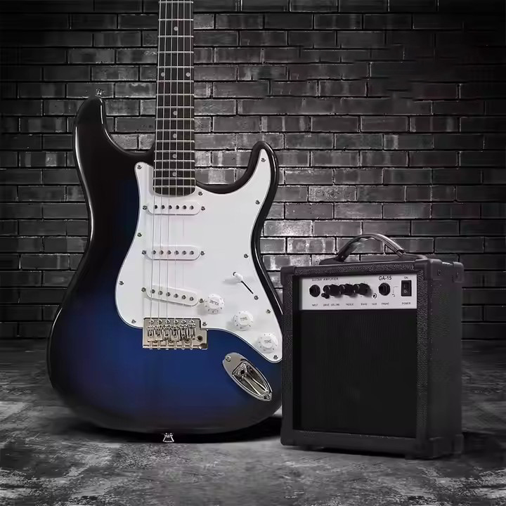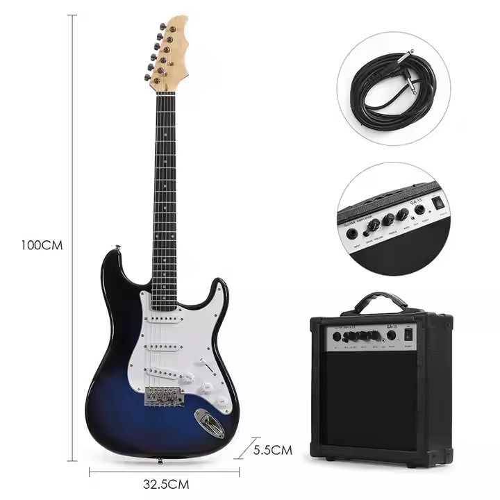 39 인치 일렉트릭 기타 세트 학생 성인 초보자 ST 록 일렉트릭 기타 15w 스피커 블루