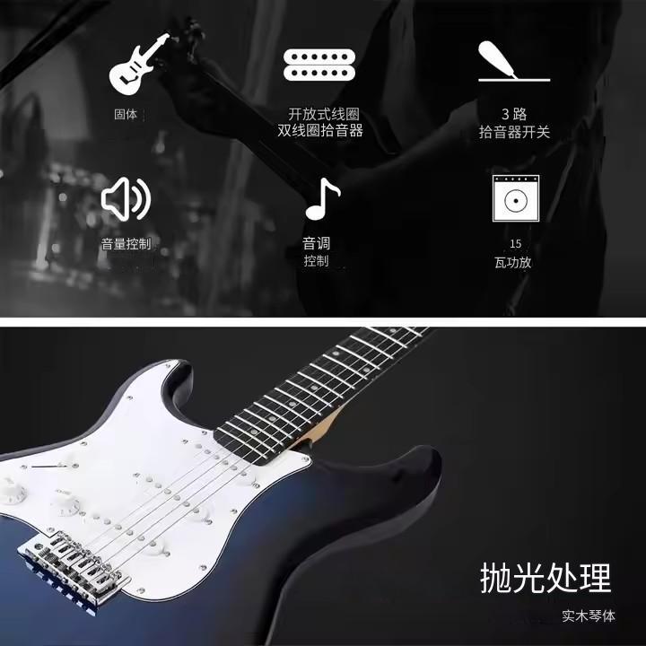 39 인치 일렉트릭 기타 세트 학생 성인 초보자 ST 록 일렉트릭 기타 15w 스피커 블루스토어 가기