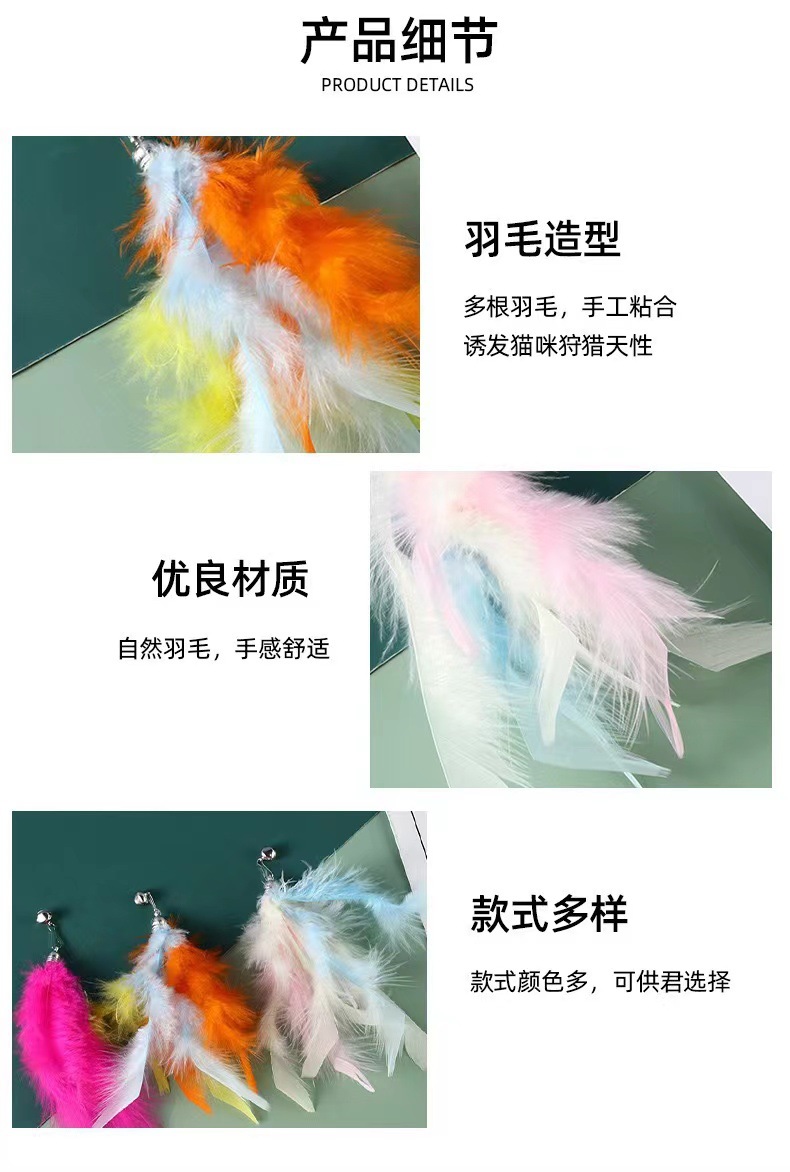 공장 직판 컬러풀한 깃털 교체형 고양이 장난감, 고양이 유혹봉, 고양이 장난감용 교체 헤드, 세 가지 색상 교체 가능스토어 가기