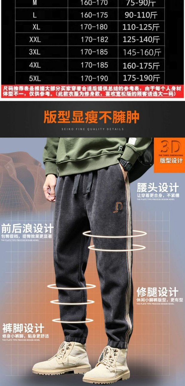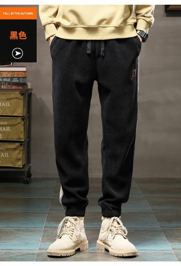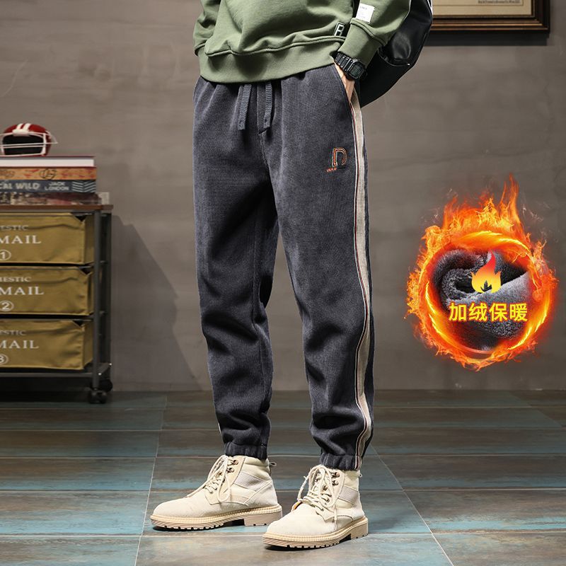 기모 두꺼운 코듀로이 바지 남성 가을과 겨울 발가락 스포츠 바지 벨벳 바지 겨울 캐주얼 하렘 바지