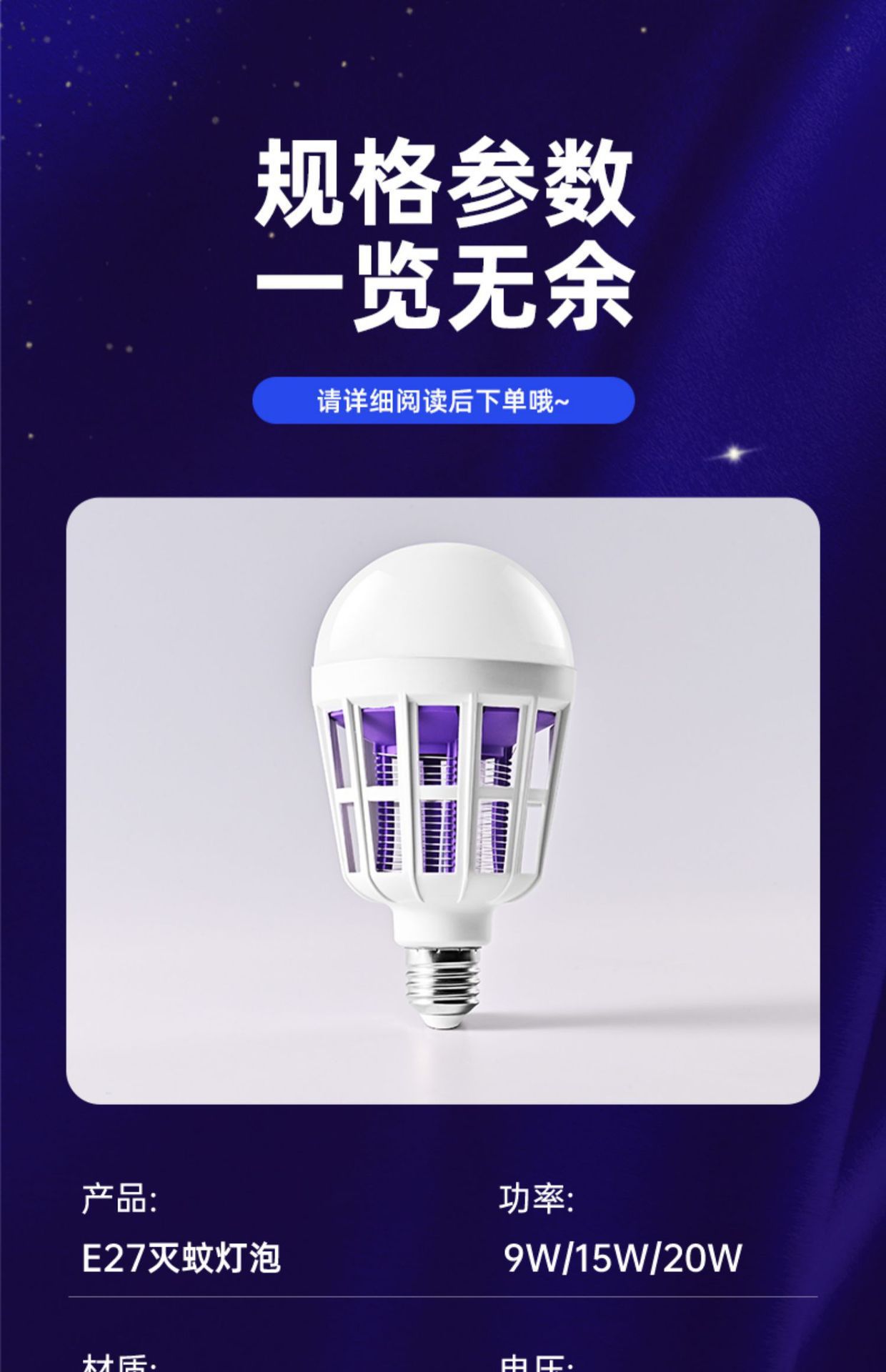 Led 모기 전구 가정용 실내 기숙사 학생 모기 퇴치 보라색 효율적인 모기 램프 전기 모기 전구 램프스토어 가기
