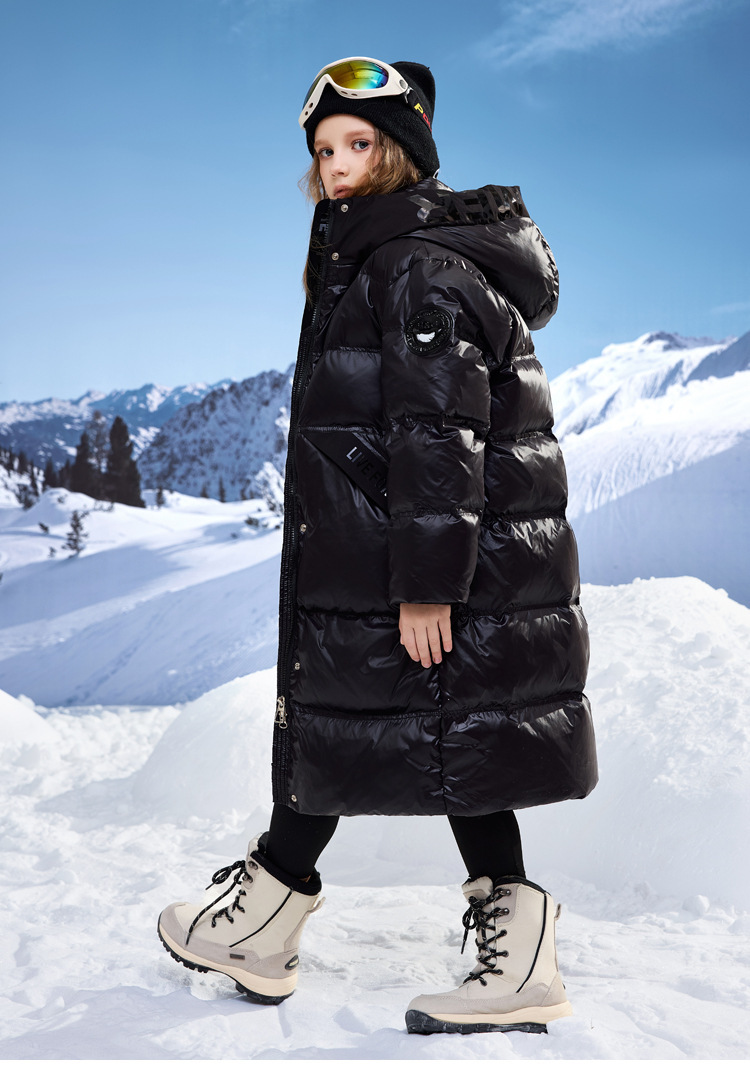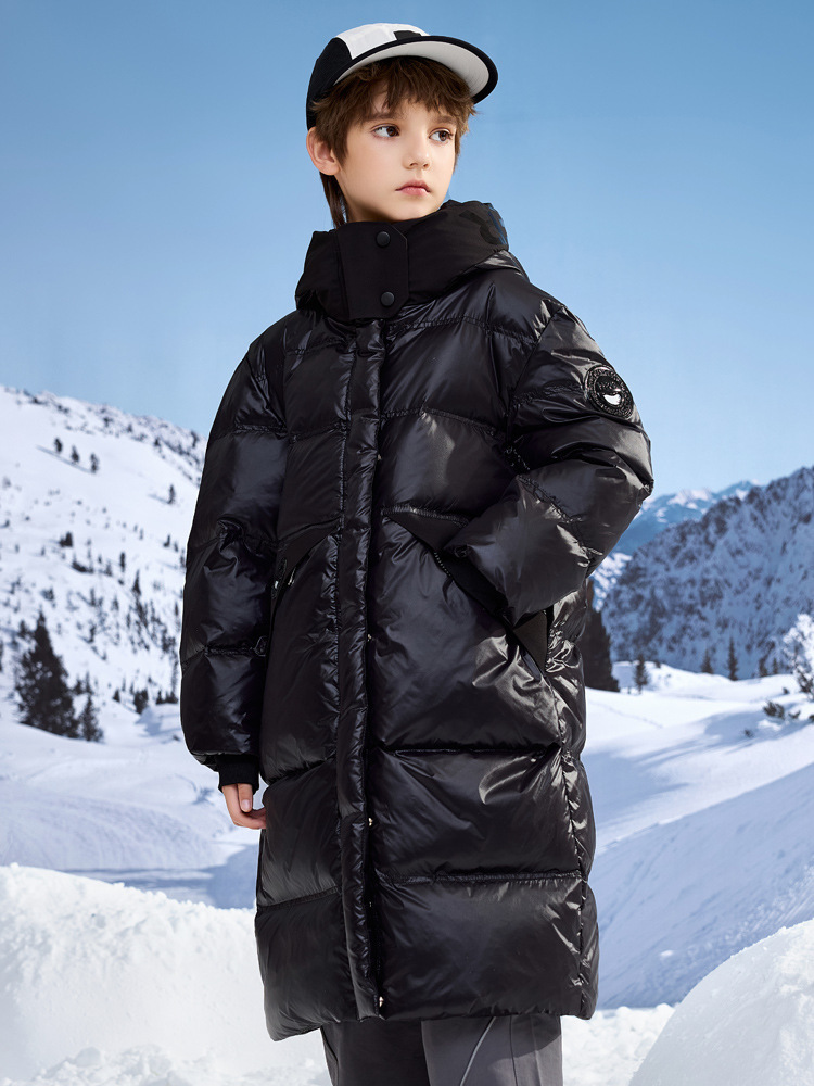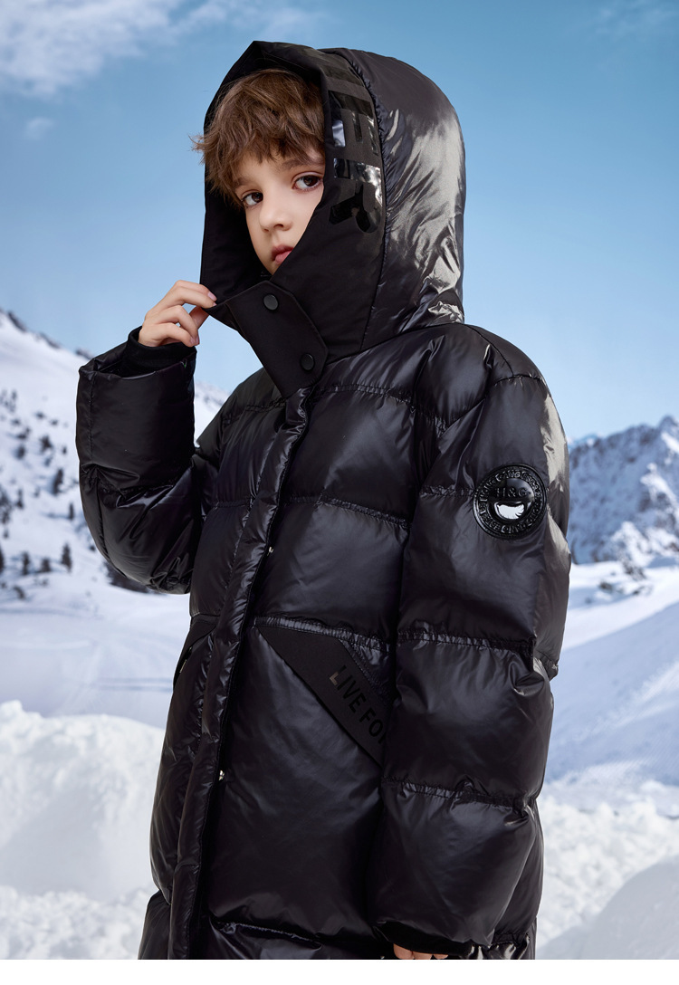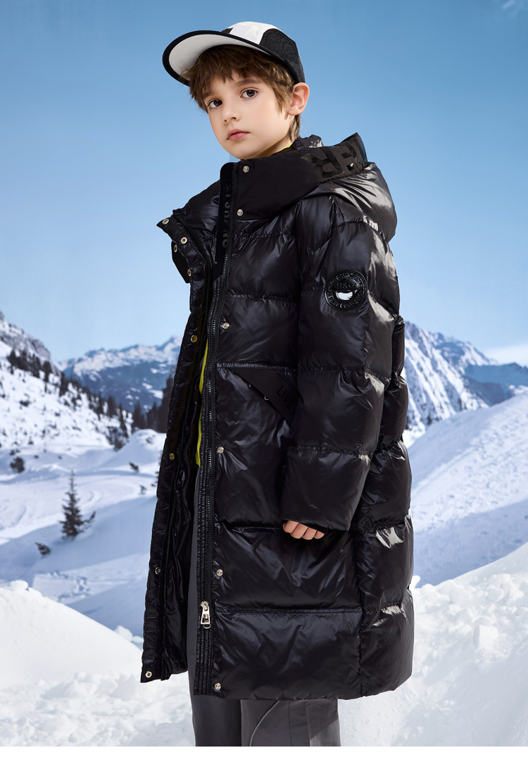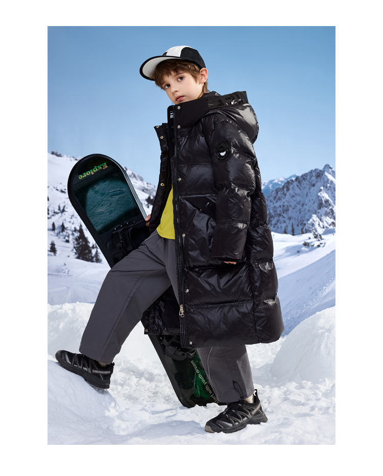 2024 겨울 새로운 주머니 긴 무릎 검은 다운 재킷 소년 방풍 소녀 따뜻한 공장 아울렛