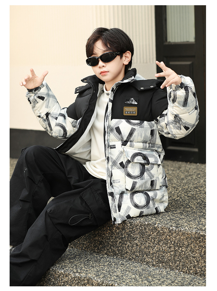 중대형 아동용 플리스 재킷, 프린트 스노우 마운틴 겨울 따뜻한 아동용 재킷, 다운 코튼 재킷, 따뜻한 스포츠 의류스토어 가기