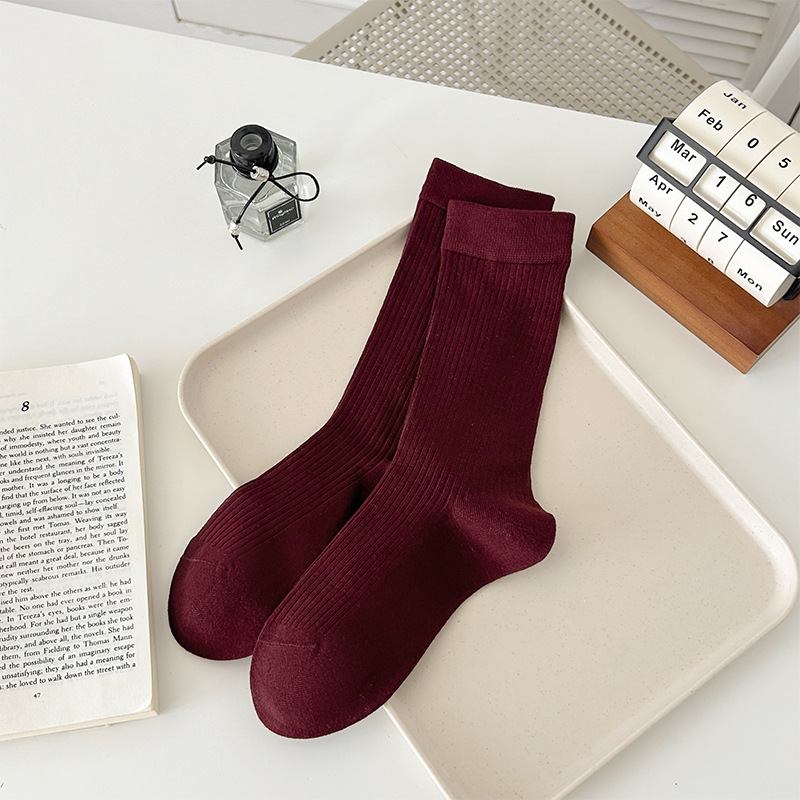 Ankora 붉은 양말 가을과 겨울 일본과 한국 스타일 여성 Combed 코튼 트렌디 미드 튜브 양말 스택 양말 국경 간 대외 무역 도매스토어 가기