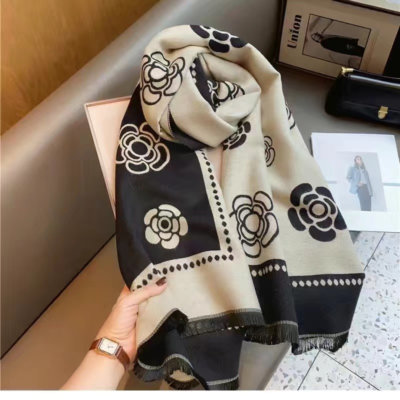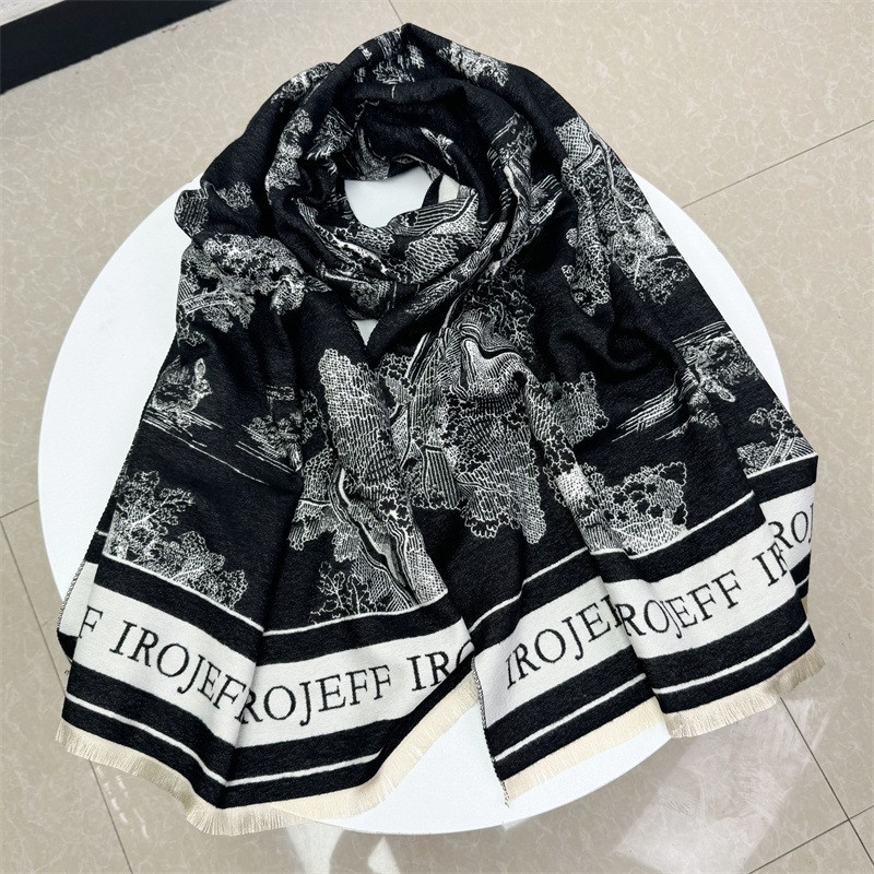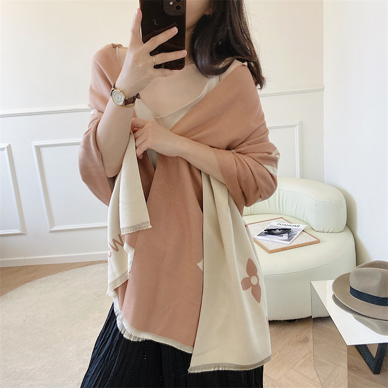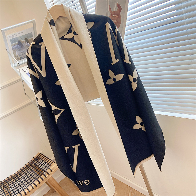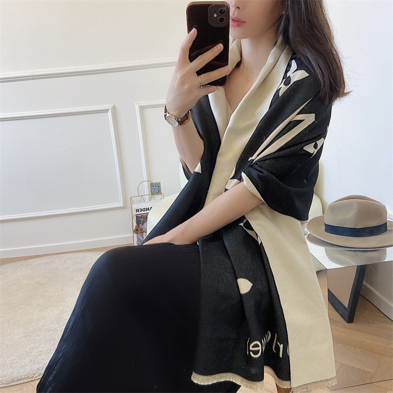 2025 가을 겨울 신상 레터링 네잎클로버 모조 캐시미어 스카프 패션 숄 여성용 두꺼운 보온 스카프