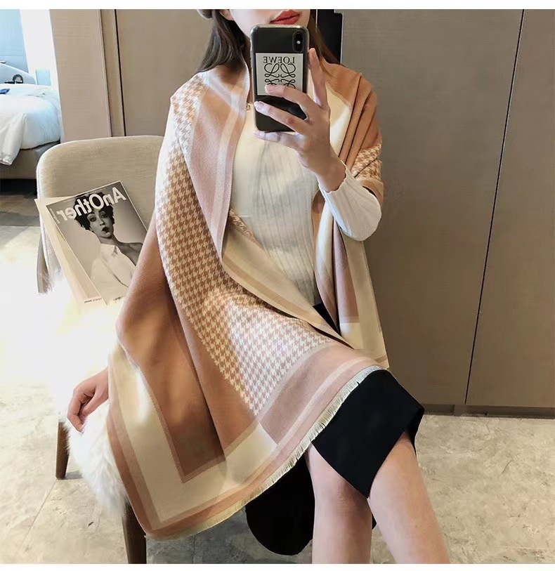 2025 가을 겨울 신상 레터링 네잎클로버 모조 캐시미어 스카프 패션 숄 여성용 두꺼운 보온 스카프스토어 가기