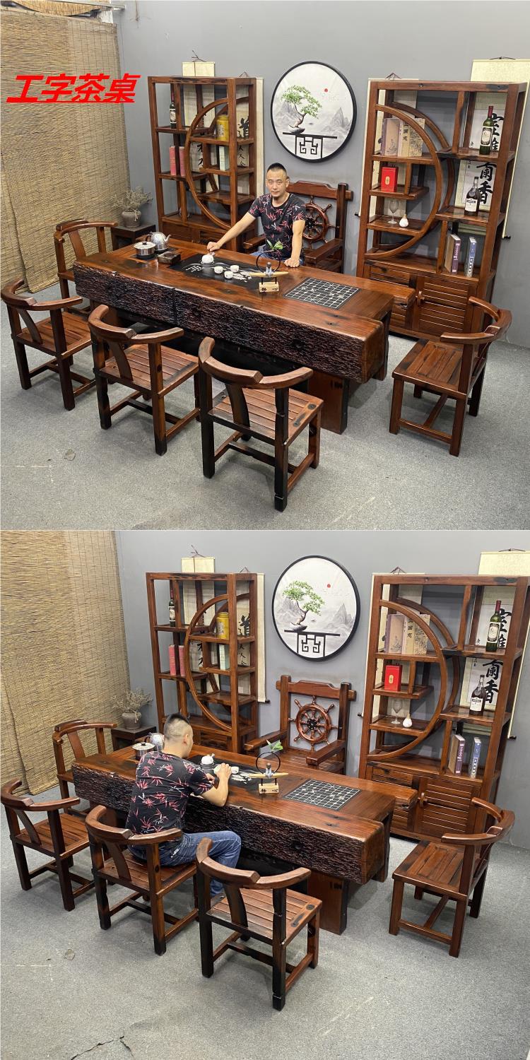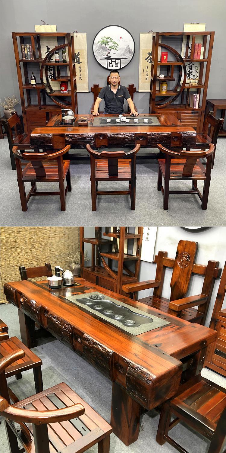 오래된 보트 나무 차 테이블과 의자 조합 단단한 나무 커피 테이블 쿵푸 차 테이블 중국 스타일 차 테이블 사무실 홈 테이블스토어 가기