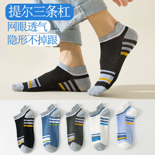 四季款船袜男条纹拼色提耳防臭透气短袜船袜浅口隐形袜男士短袜