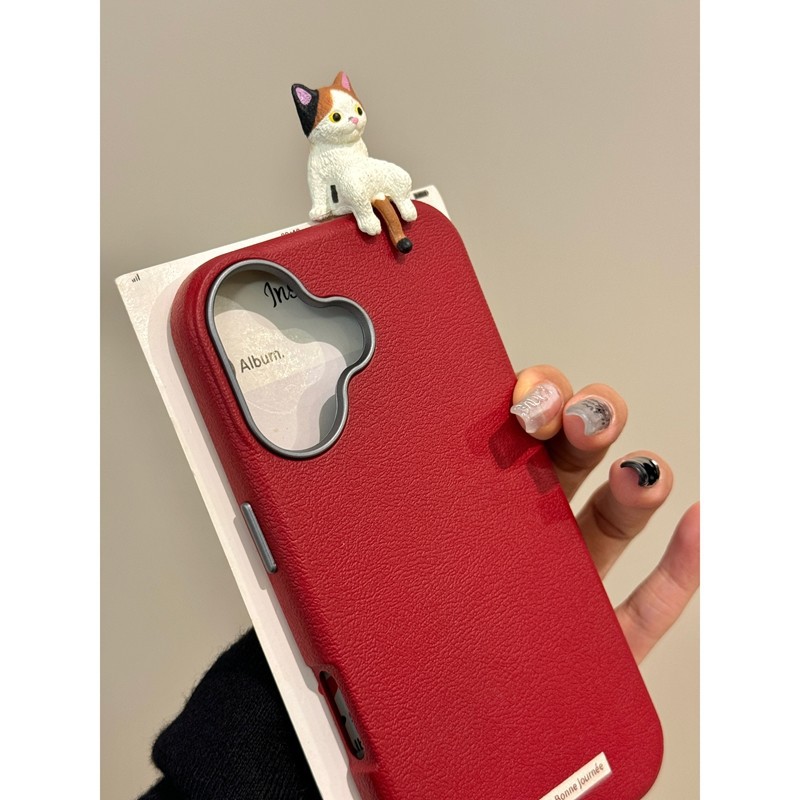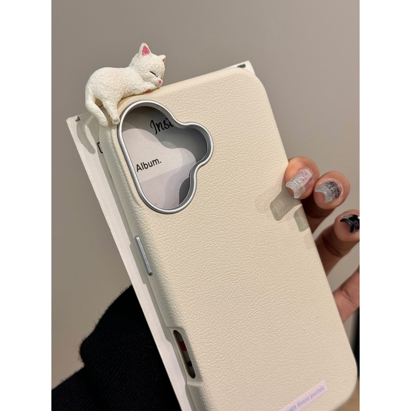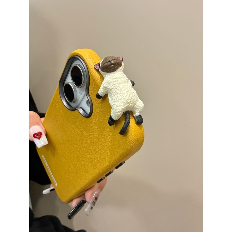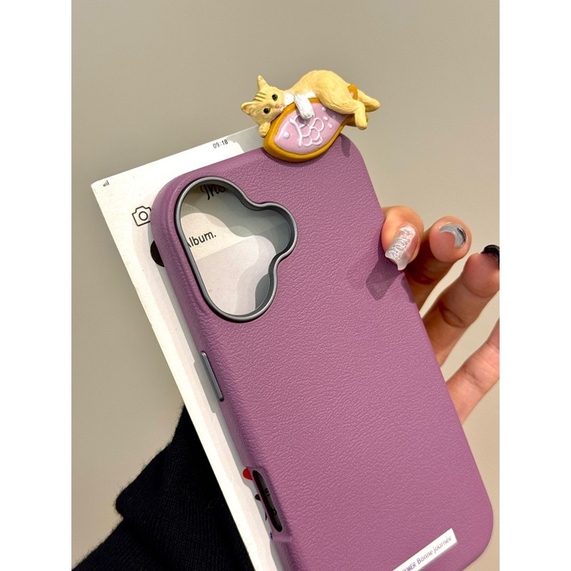 Ins 솔리드 컬러 3 차원 거짓말 경향이있는 귀여운 고양이 iPhone16promax Apple 15 휴대 전화 케이스 14 여성 13