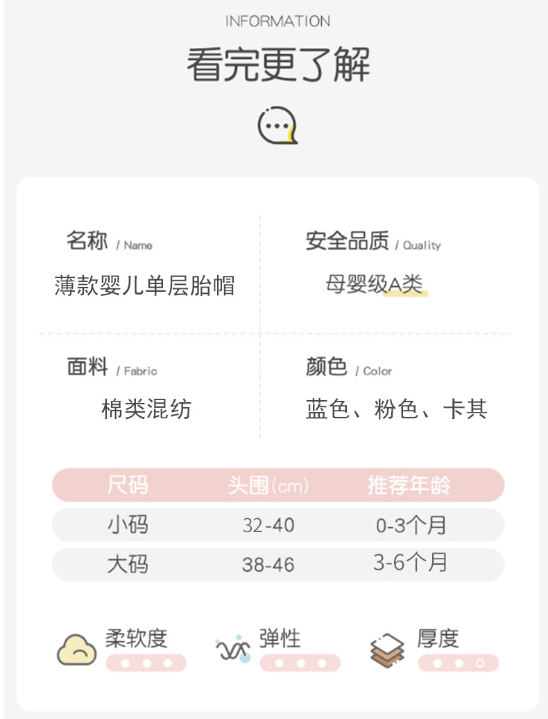신생아 아기 모자 사계절 얇은 단층 신생아 뼈없는 태아 모자 봄과 가을 아기 풀오버 캡 공장 직접 공급스토어 가기